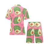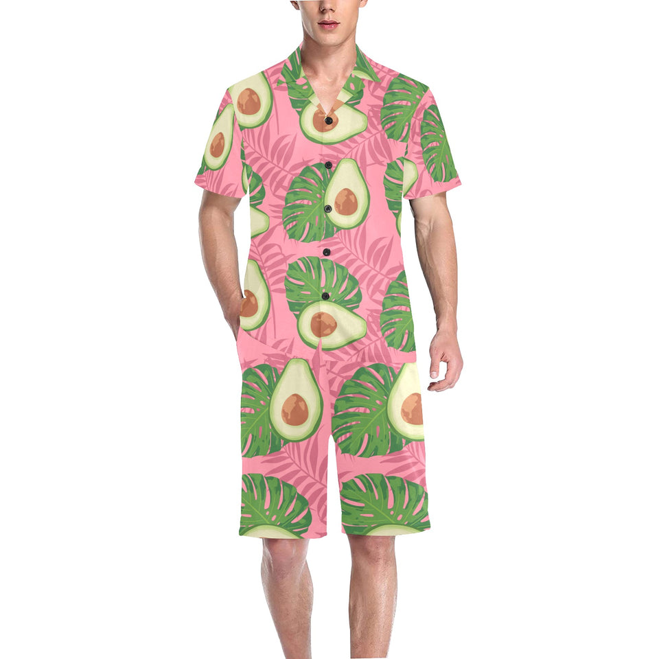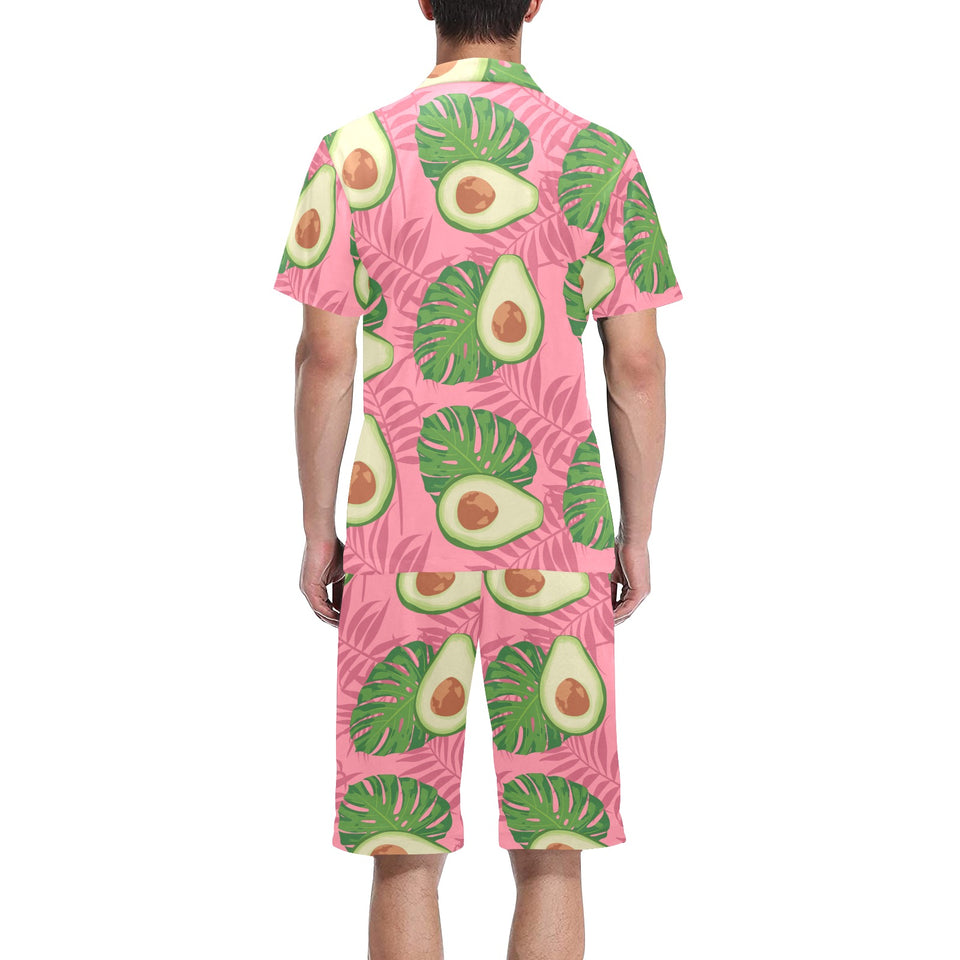 Avocado slices leaves pink back ground Men's V-Neck Short Pajama Set
