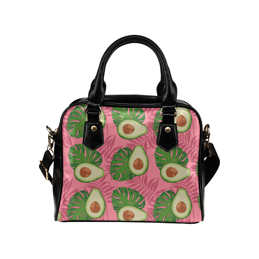 Avocado slices leaves pink back ground Shoulder Handbag is a uniqued design and limited item. It made to order, hand printed, and sewn with love in our factory.