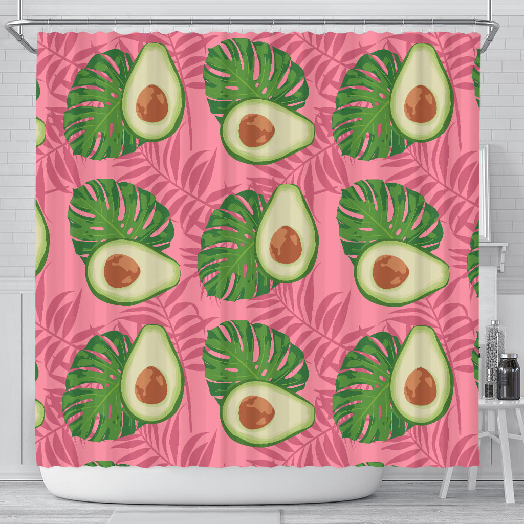 Avocado Slices Leaves Pink Back Ground Shower Curtain Fulfilled In US