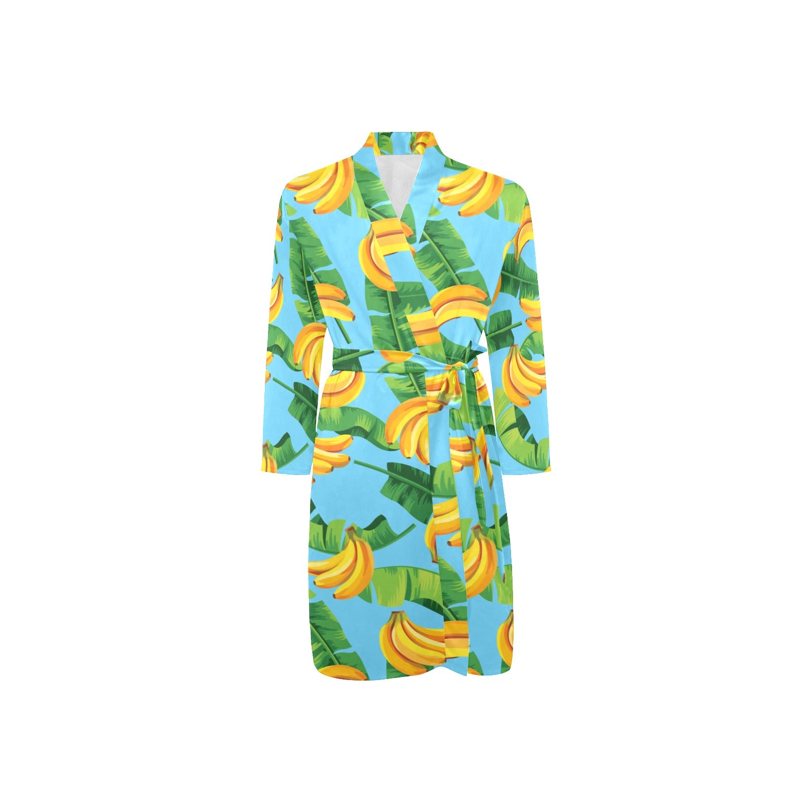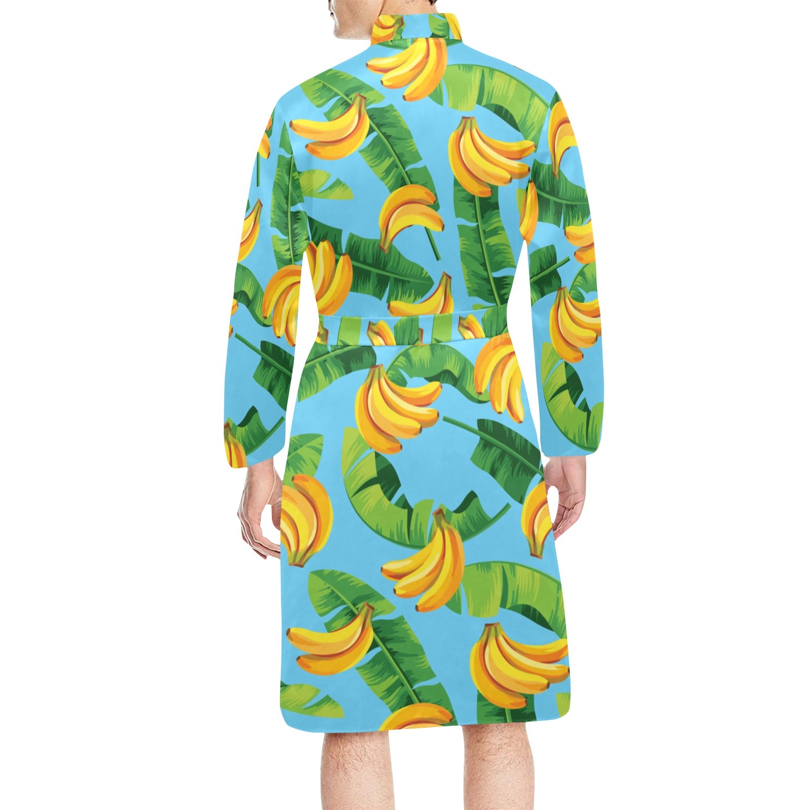 banana leaves banana design pattern Men's Long Sleeve Belted Night Robe