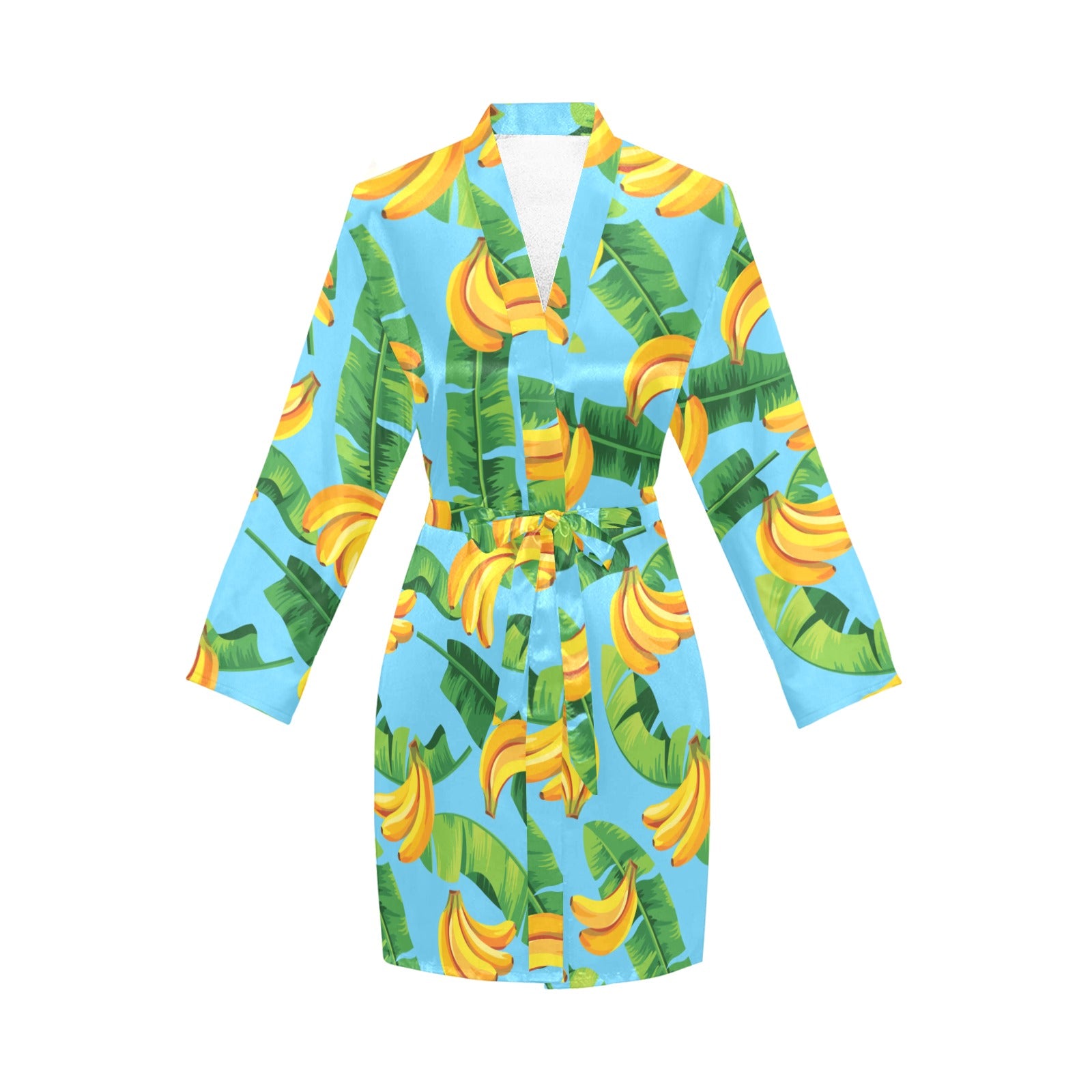 banana leaves banana design pattern Women's Long Sleeve Belted Night Robe