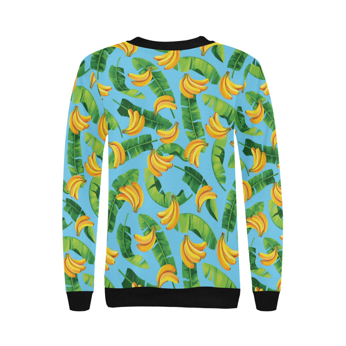 banana leaves banana design pattern Women's Crew Neck Sweatshirt