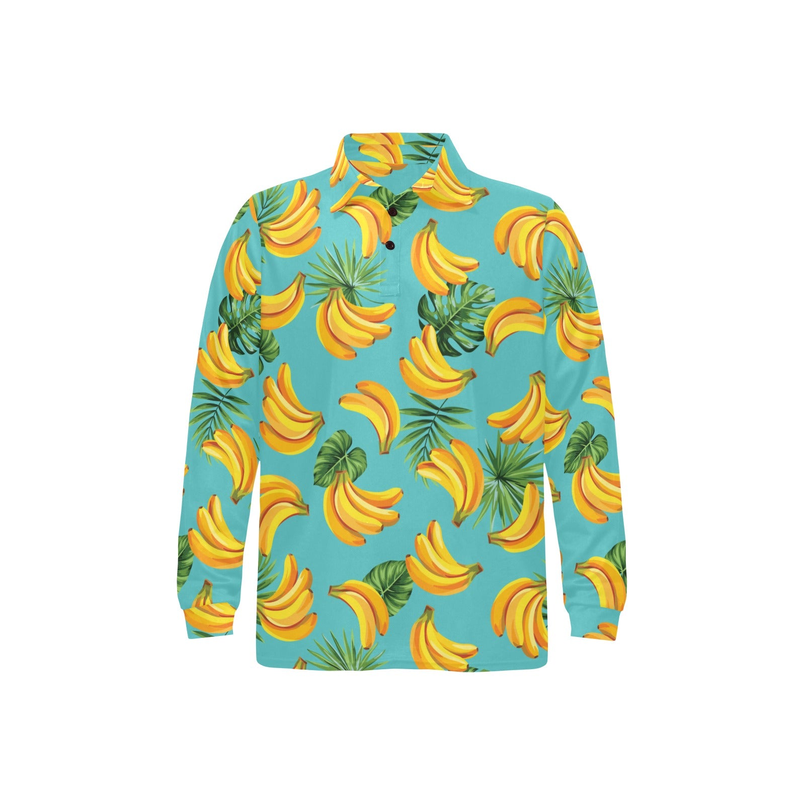 Banana Palm Leaves pattern background Men's Long Sleeve Polo Shirt