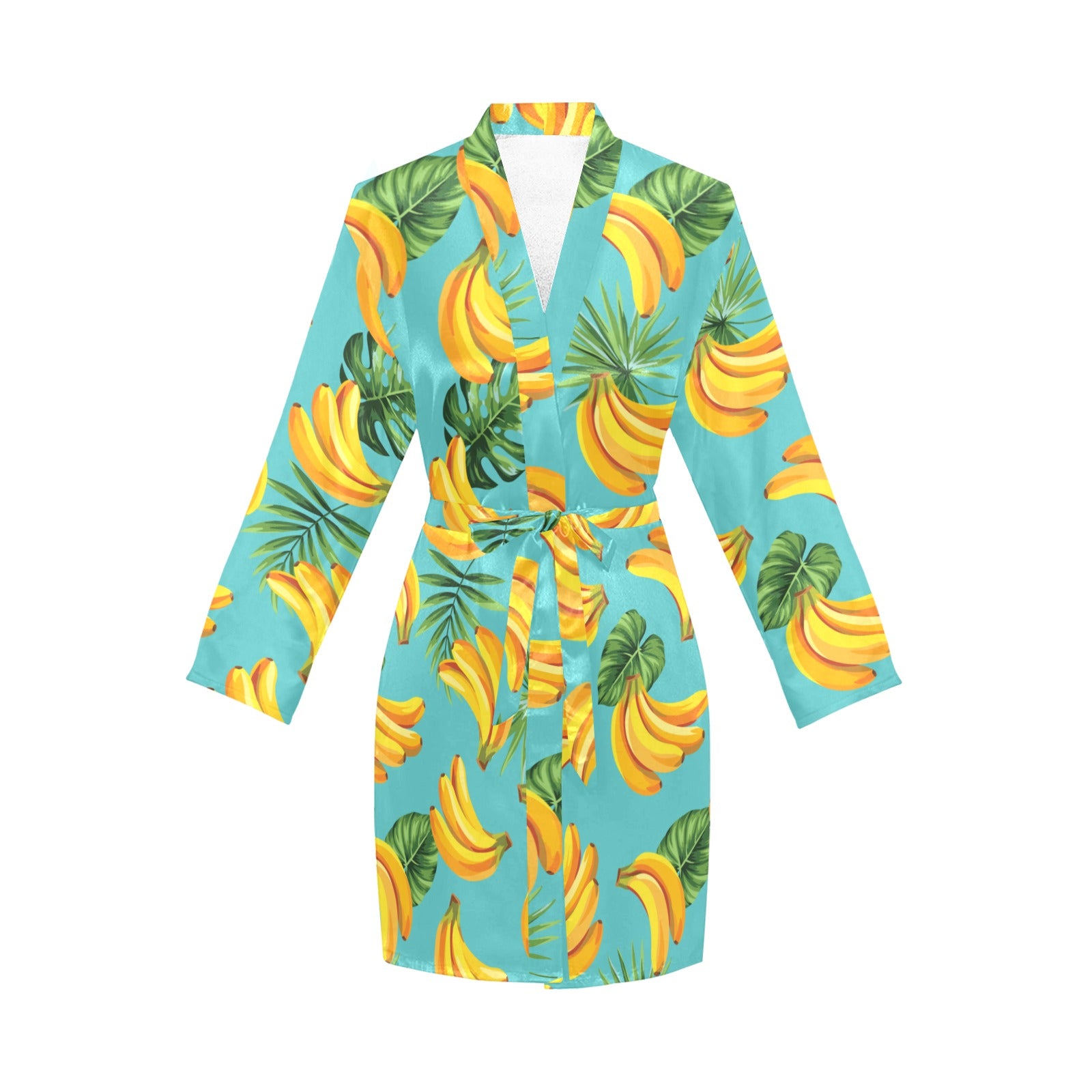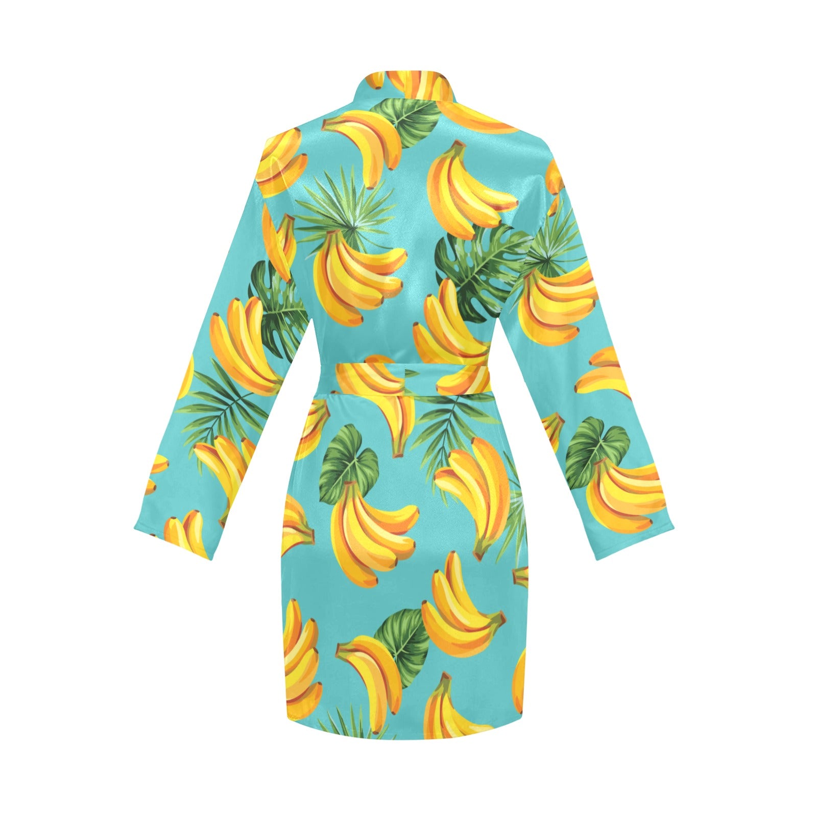 Banana Palm Leaves pattern background Women's Long Sleeve Belted Night Robe