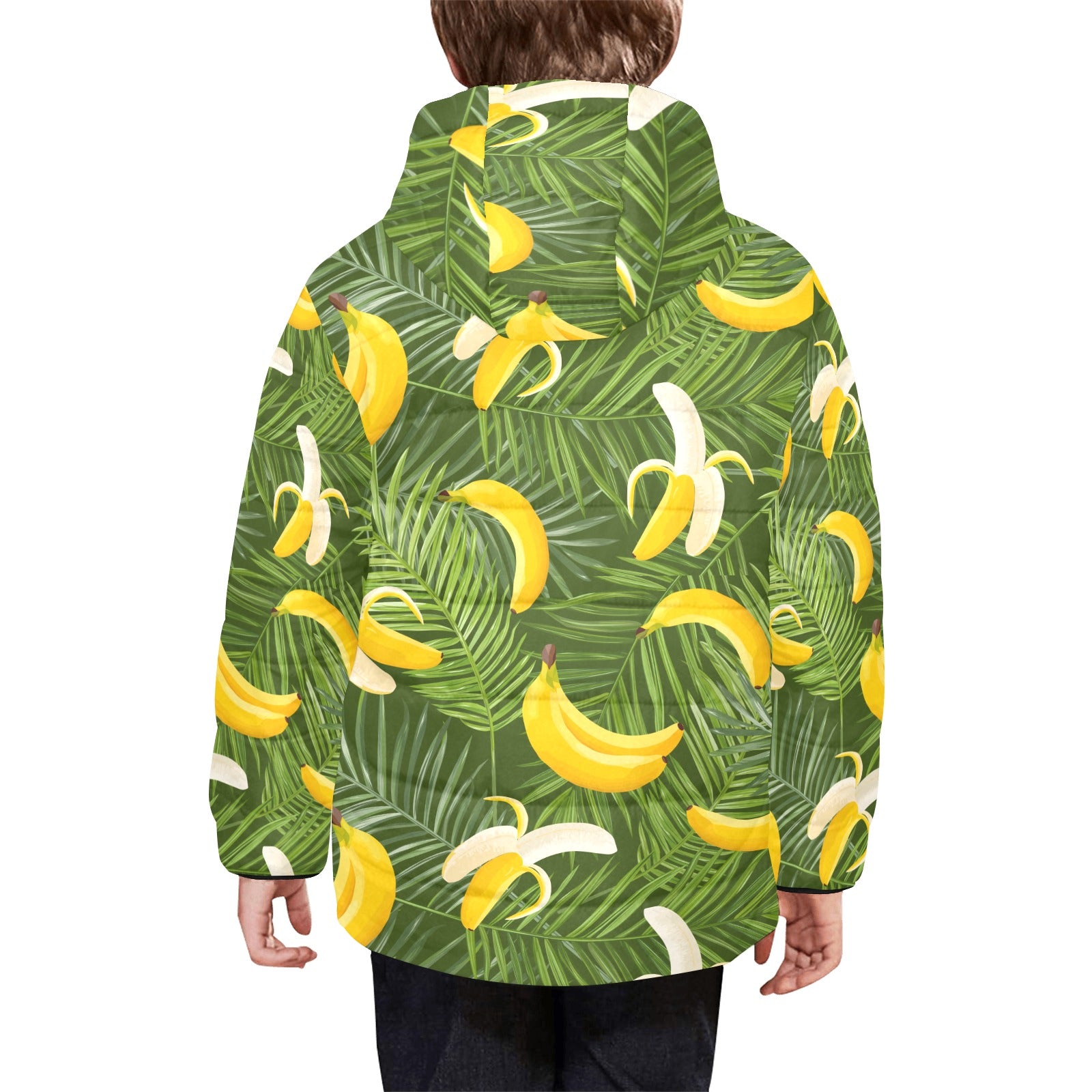 Banana Palm Leaves pattern Kids' Boys' Girls' Padded Hooded Jacket