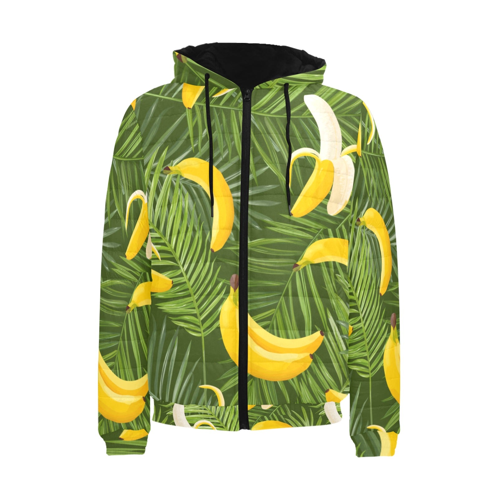 Banana Palm Leaves pattern Men's Padded Hooded Jacket