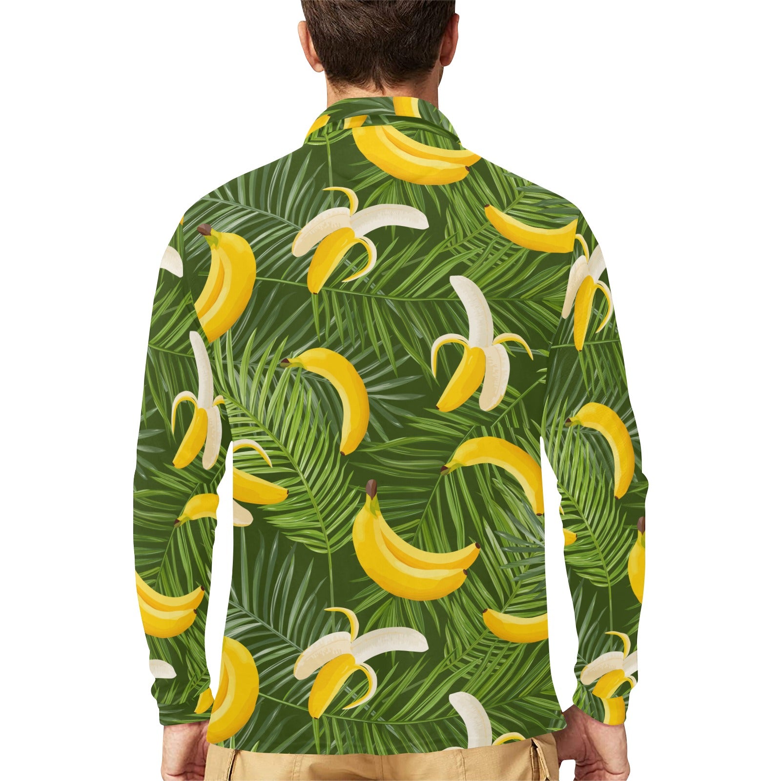 Banana Palm Leaves pattern Men's Long Sleeve Polo Shirt