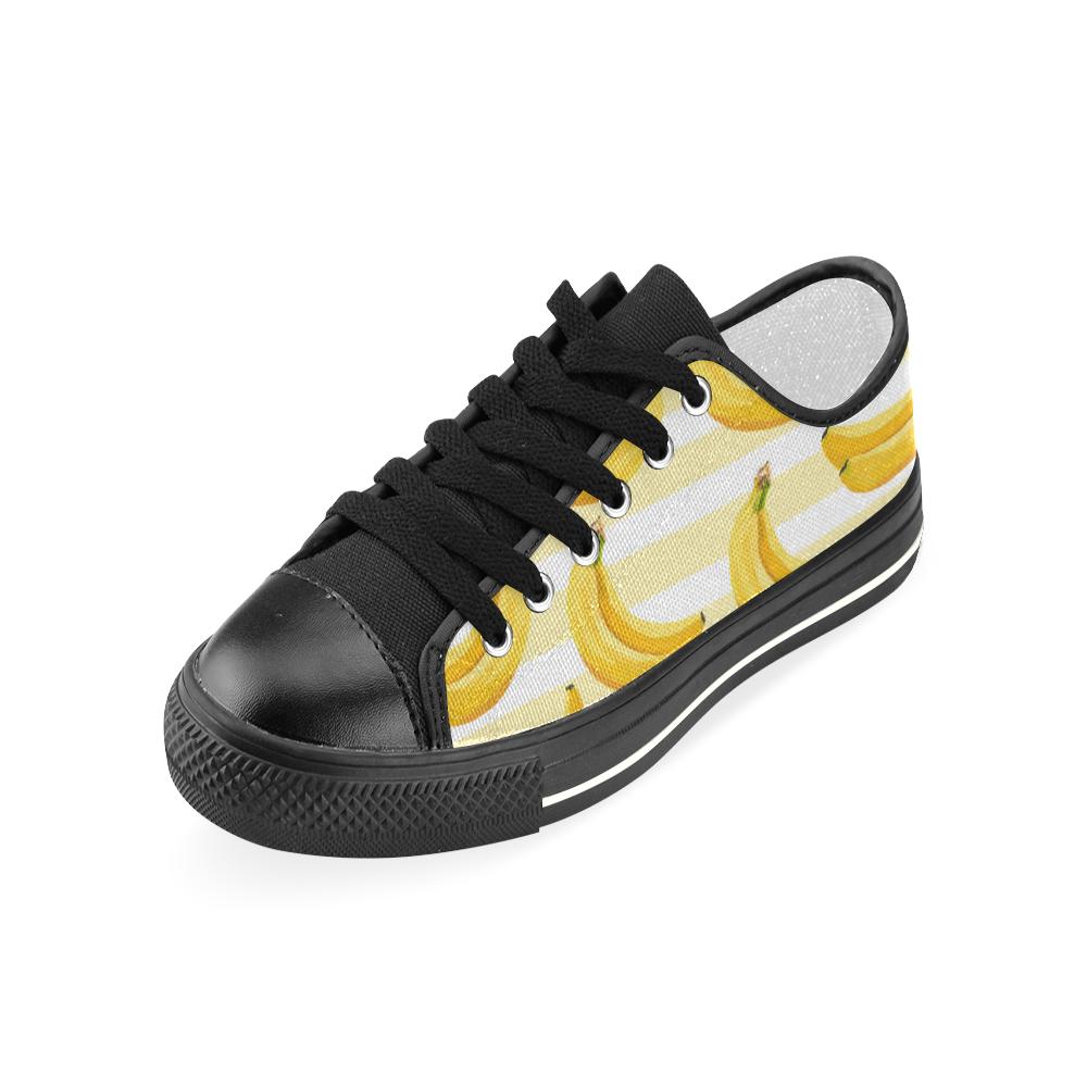Banana pattern blackground Kids' Boys' Girls' Low Top Canvas Shoes Black