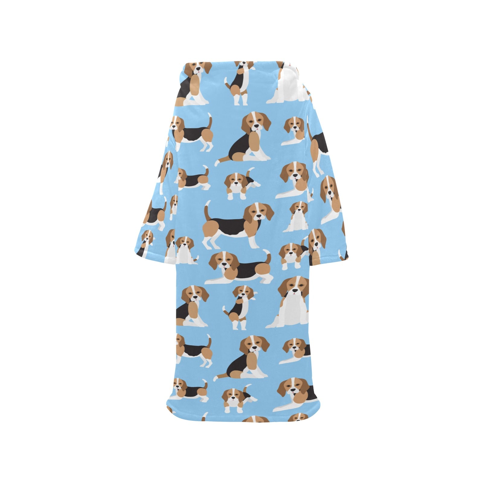 Beagle dog blue background pattern Blanket Robe with Sleeves