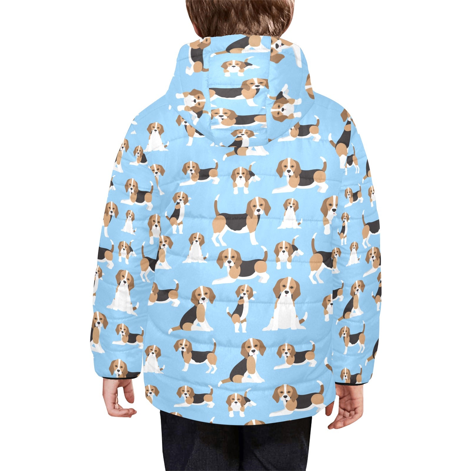 Beagle dog blue background pattern Kids' Boys' Girls' Padded Hooded Jacket