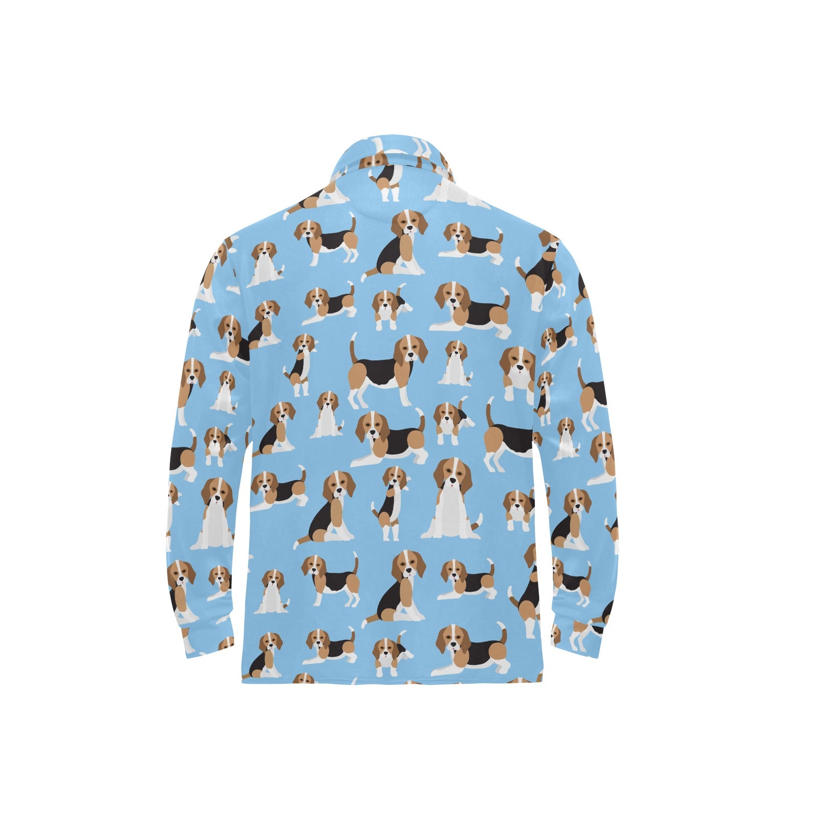 Beagle dog blue background pattern Men's Long Sleeve Polo Shirt