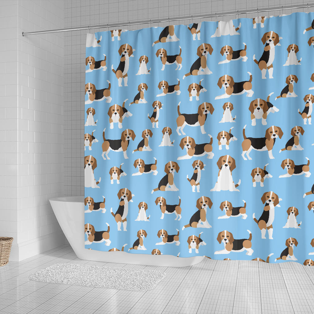 Beagle dog blue background pattern Shower Curtain is a uniqued design and limited item. It made to order, hand printed, and sewn with love in our factory.