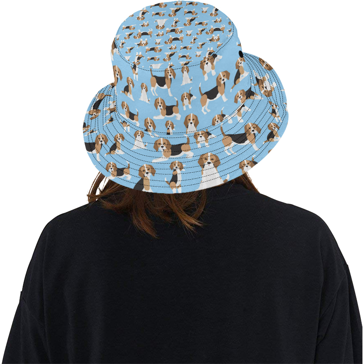 Beagle dog blue background pattern Unisex Bucket Hat is a uniqued design and limited item. It made to order, hand printed, and sewn with love in our factory.