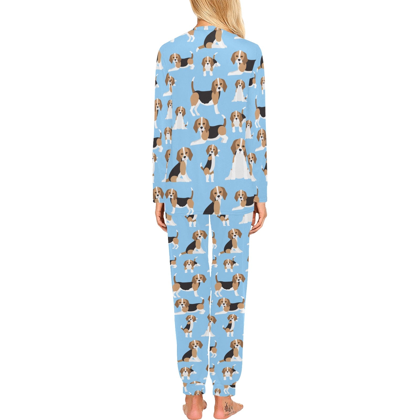 Beagle dog blue background pattern Women's All Over Print Pajama Set
