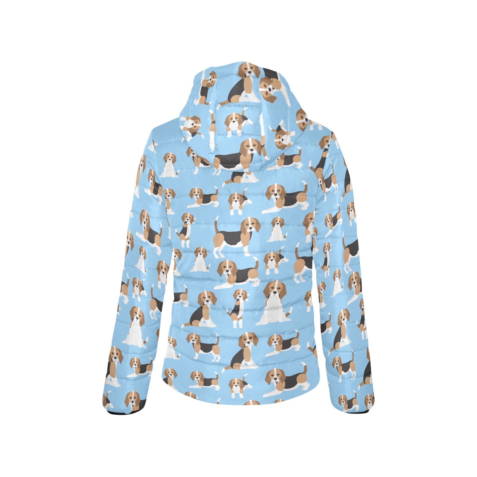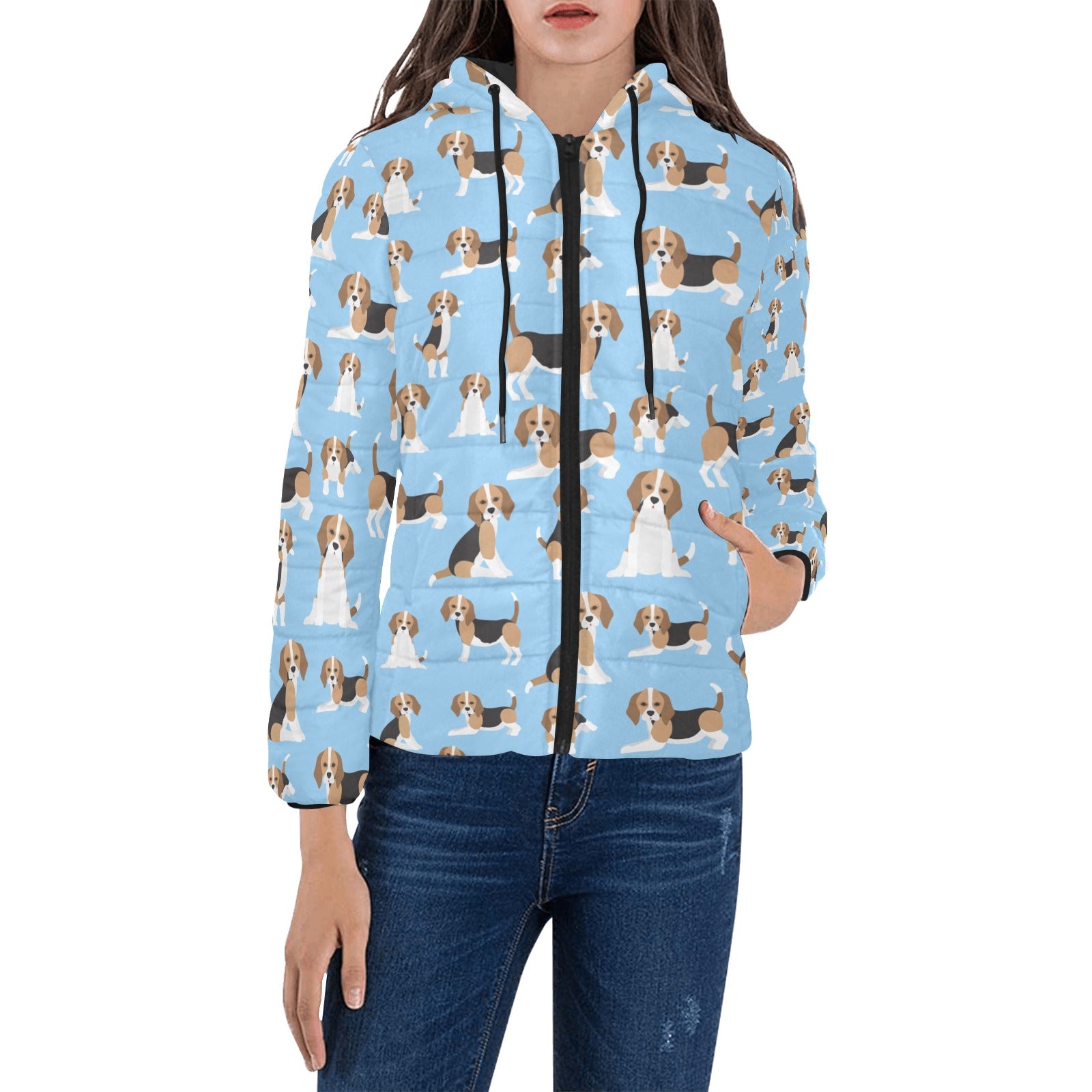 Beagle dog blue background pattern Women's Padded Hooded Jacket
