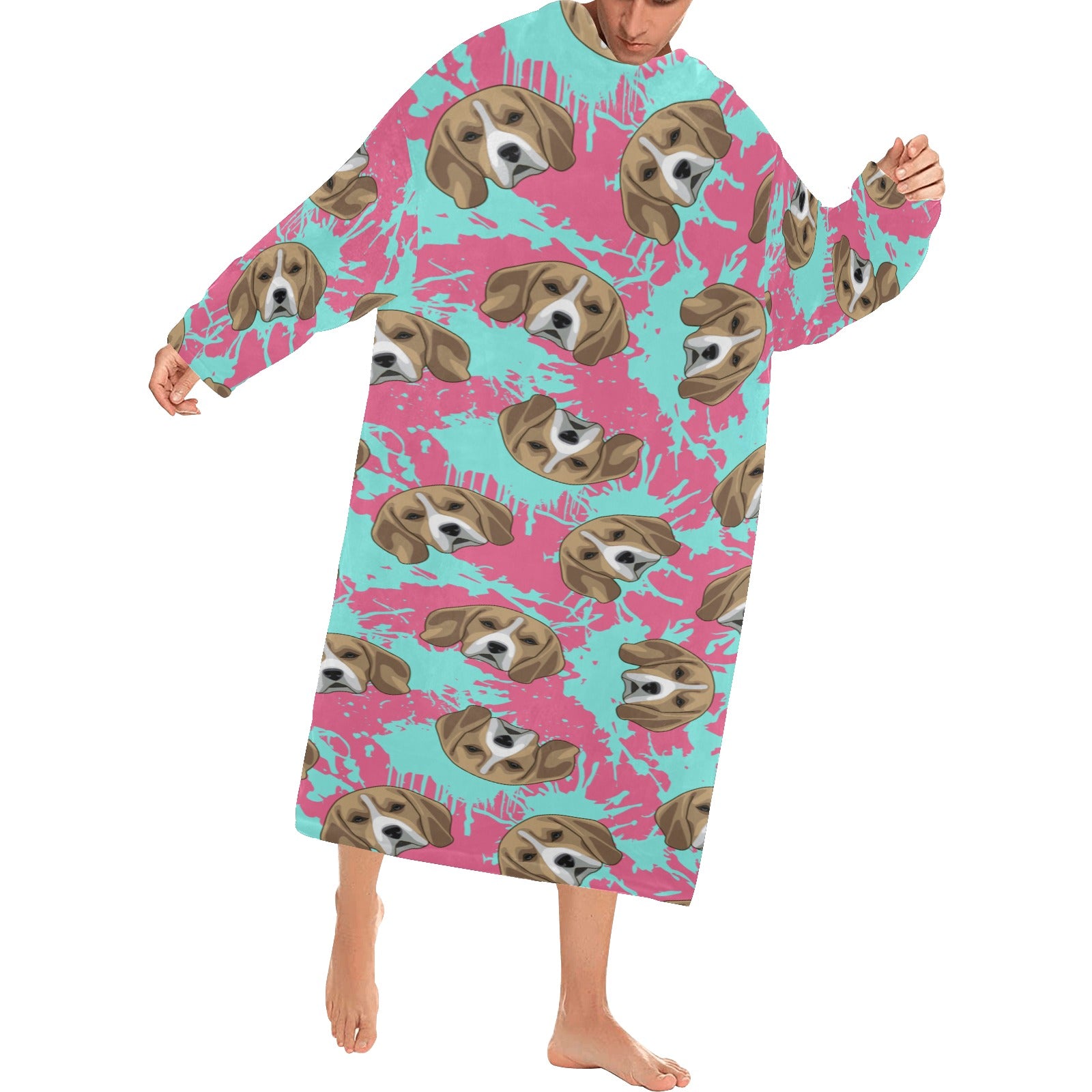 Beagle muzzles turquoise paint splashes pink patte Blanket Robe with Sleeves