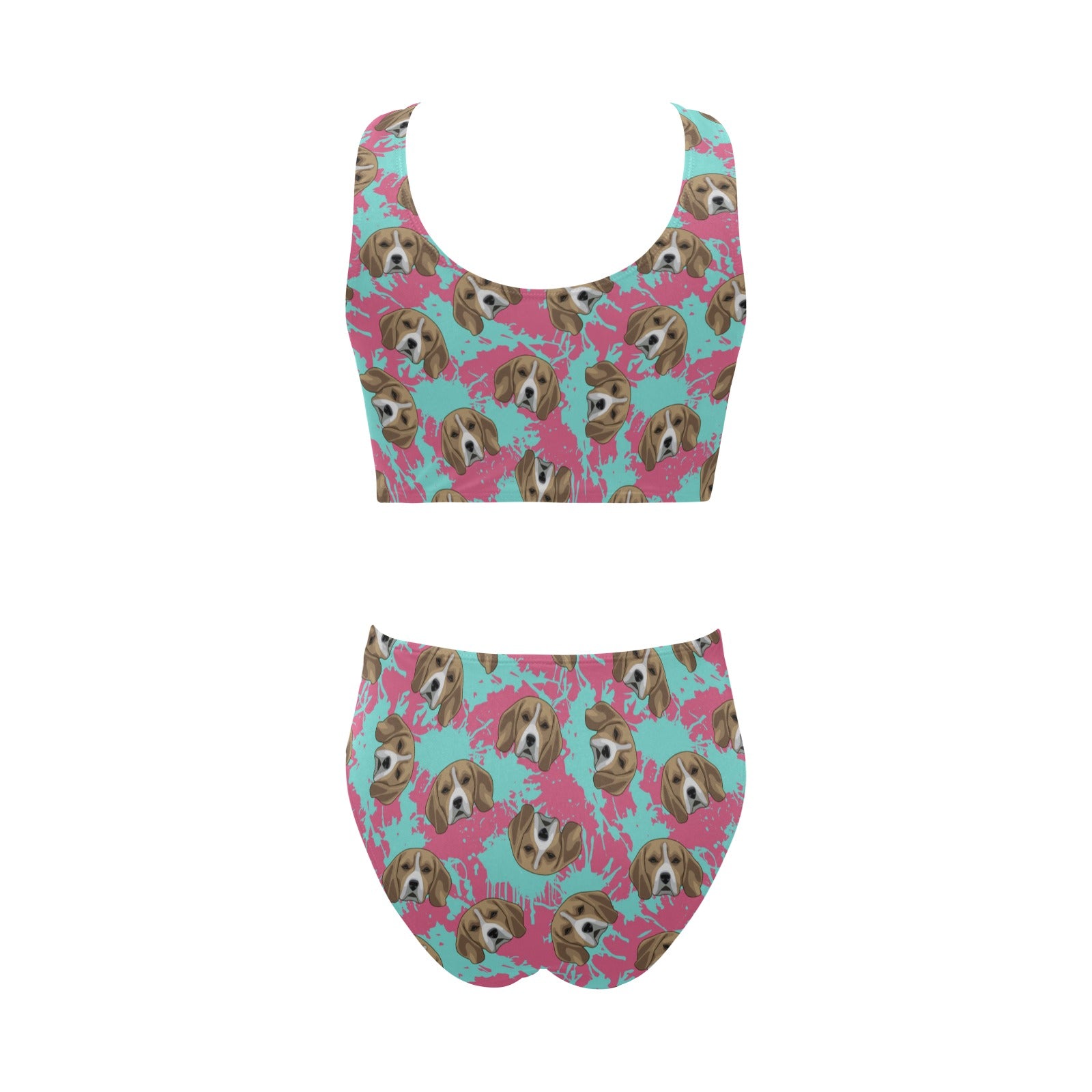 Beagle muzzles turquoise paint splashes pink patte Chest Bowknot High Waisted Bikini Swimsuit