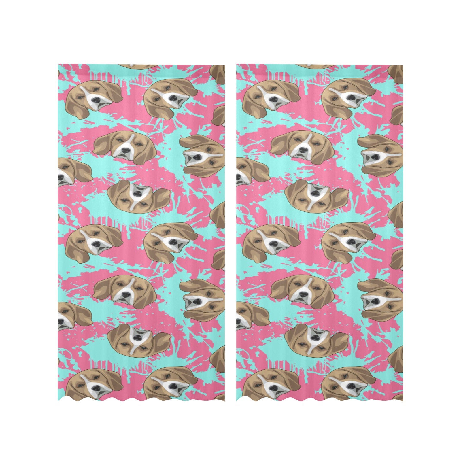 Beagle muzzles turquoise paint splashes pink patte Gauze Curtain