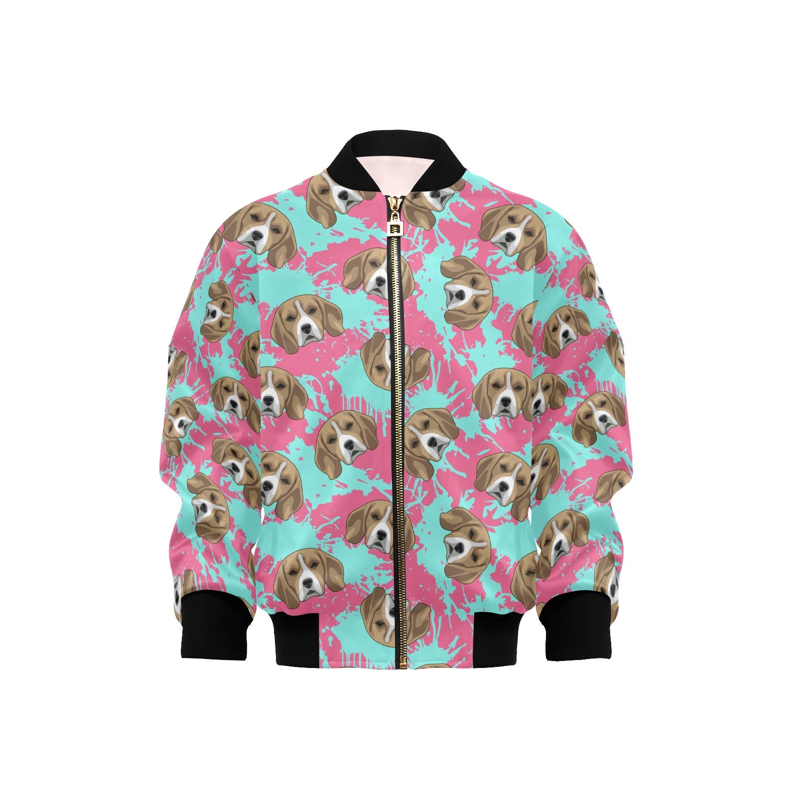 Beagle muzzles turquoise paint splashes pink patte Kids' Boys' Girls' Bomber Jacket