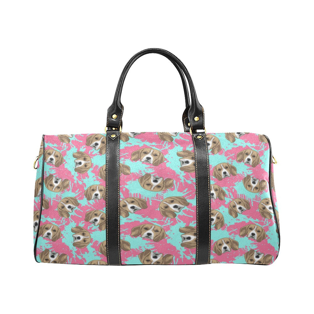 Beagle muzzles turquoise paint splashes pink patte Travel Bag
