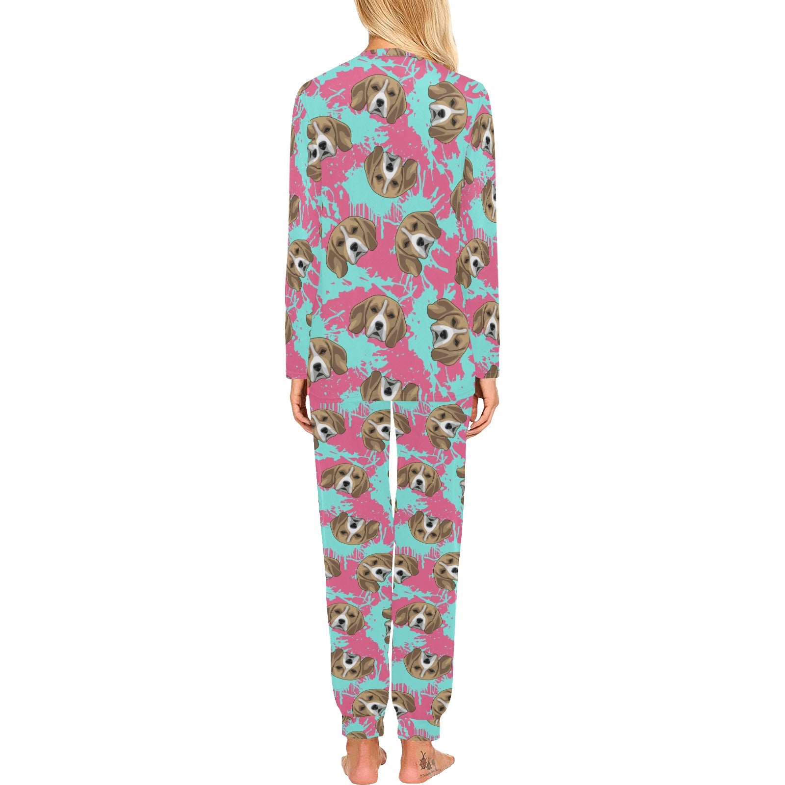 Beagle muzzles turquoise paint splashes pink patte Women's All Over Print Pajama Set