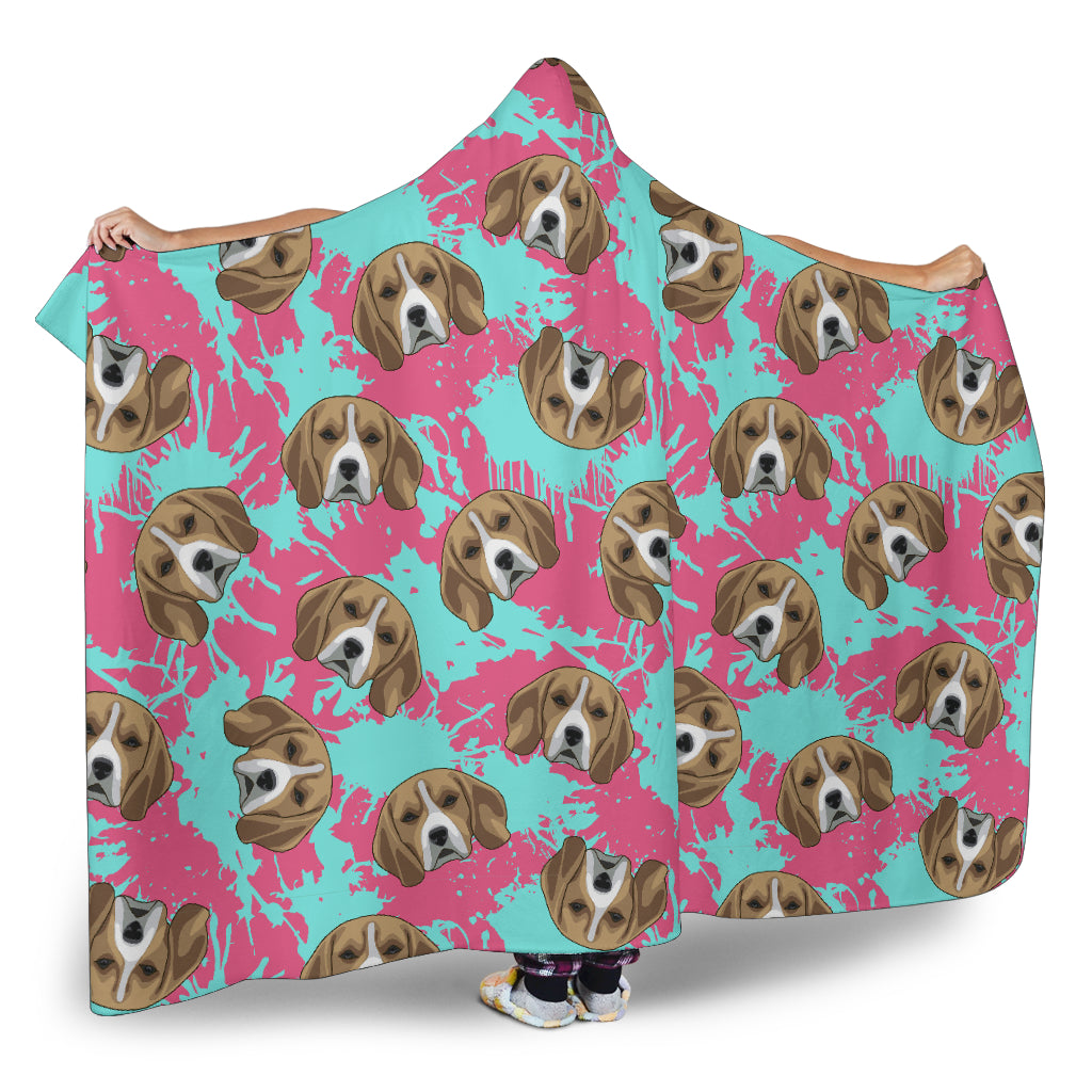 Beagle muzzles turquoise paint splashes pink pattern Hooded Blanket are custom-made-to-order and handcrafted to the highest quality standards.