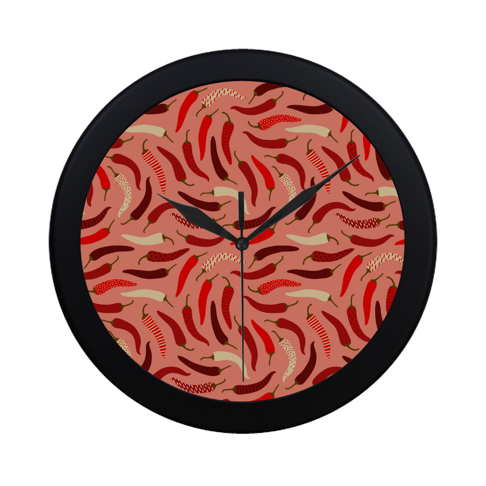 Beautiful Chili peppers pattern Elegant Black Wall Clock