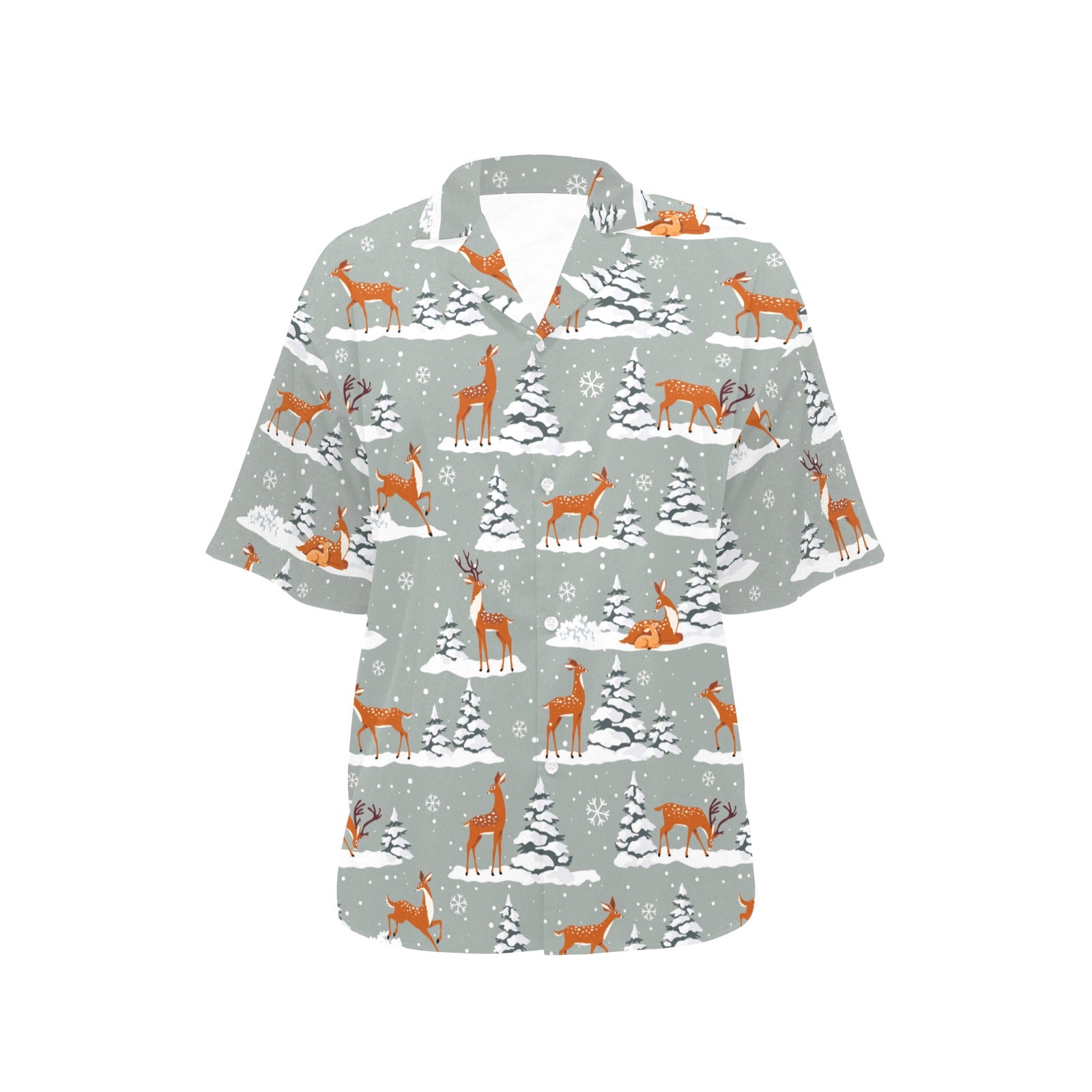 Beautiful deers Winter Christmas Women's All Over Print Hawaiian Shirt