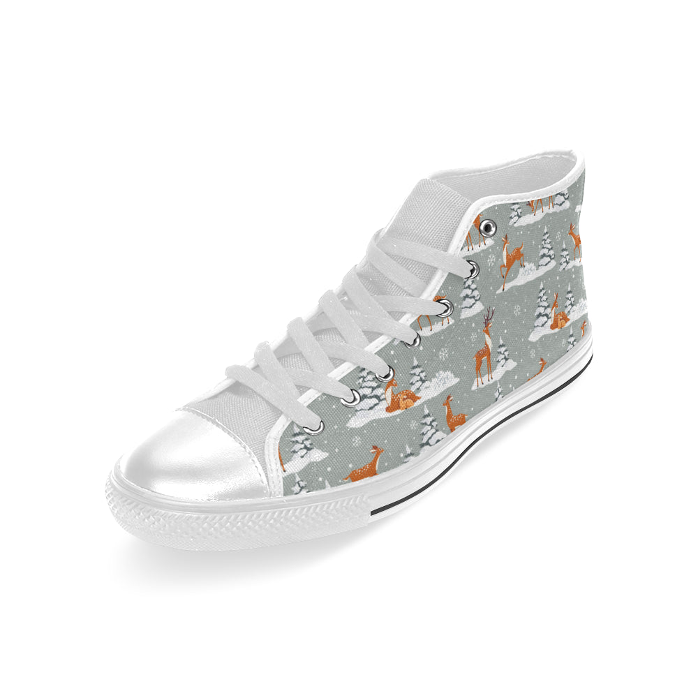 Beautiful deers Winter Christmas Men's High Top Canvas Shoes White