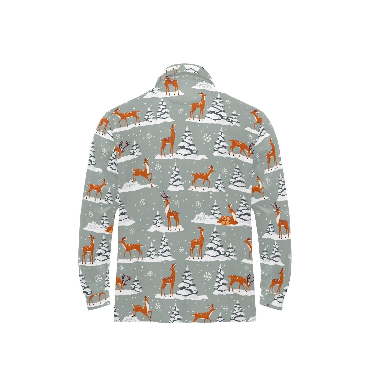Beautiful deers Winter Christmas Men's Long Sleeve Polo Shirt