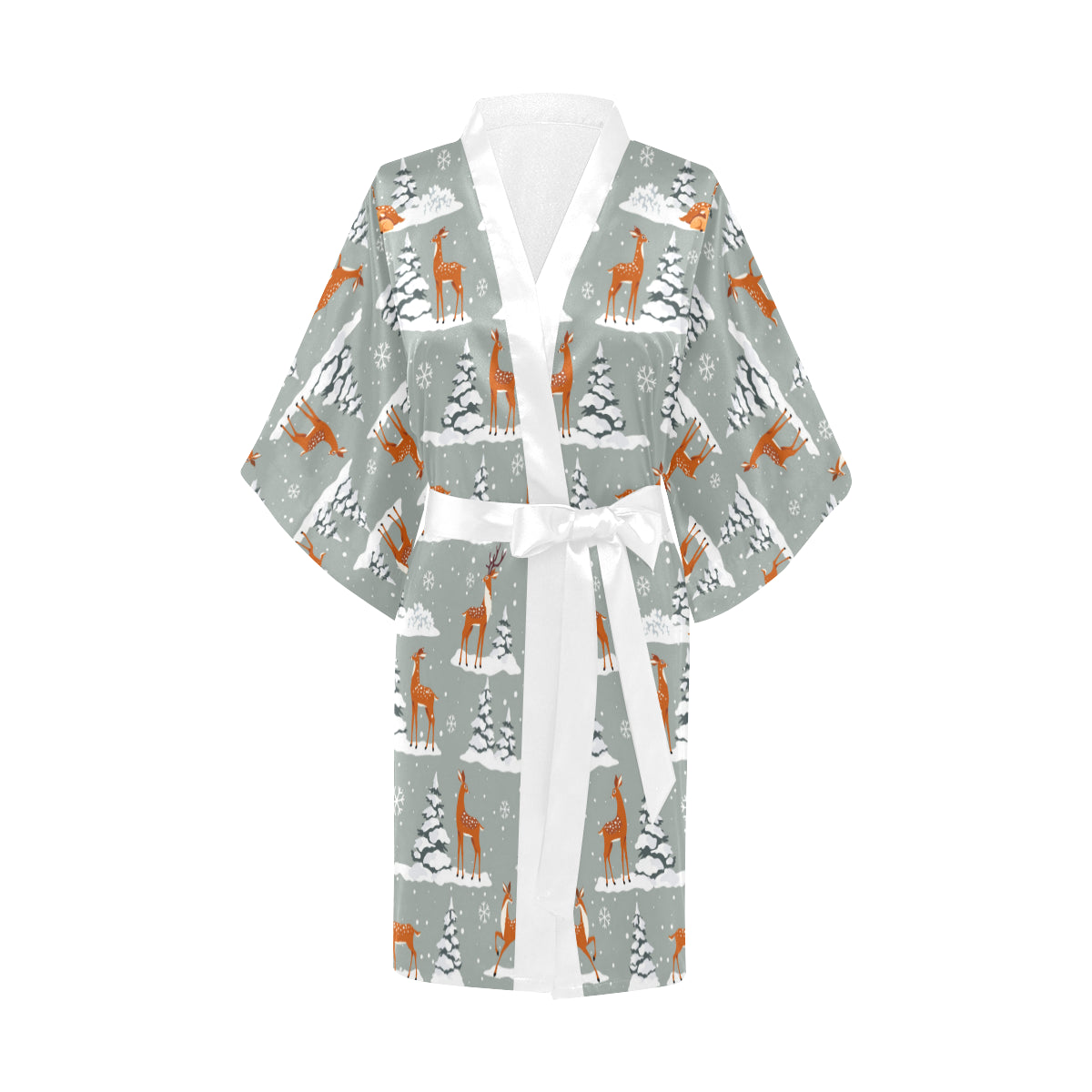 Beautiful deers Winter Christmas Women's Short Kimono Robe is a uniqued design and limited item. It made to order, hand printed, and sewn with love in our factory.
