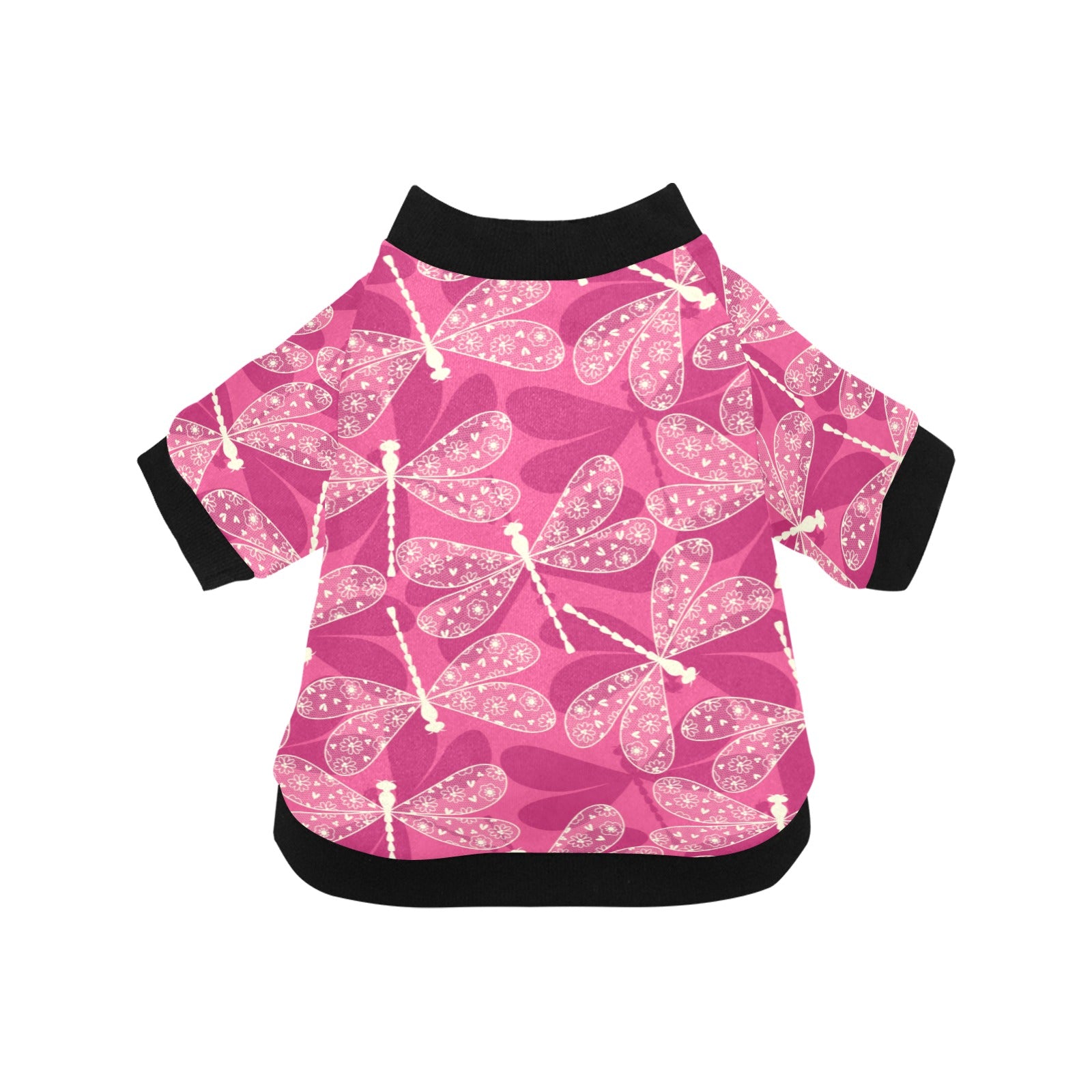 Beautiful dragonfly pink background All Over Print Pet Dog Round Neck Fuzzy Shirt