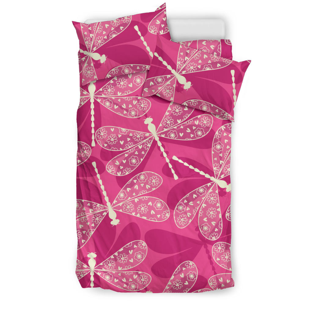 Beautiful dragonfly pink background Bedding Set is a uniqued design and limited item. It made to order, hand printed, and sewn with love in our factory.