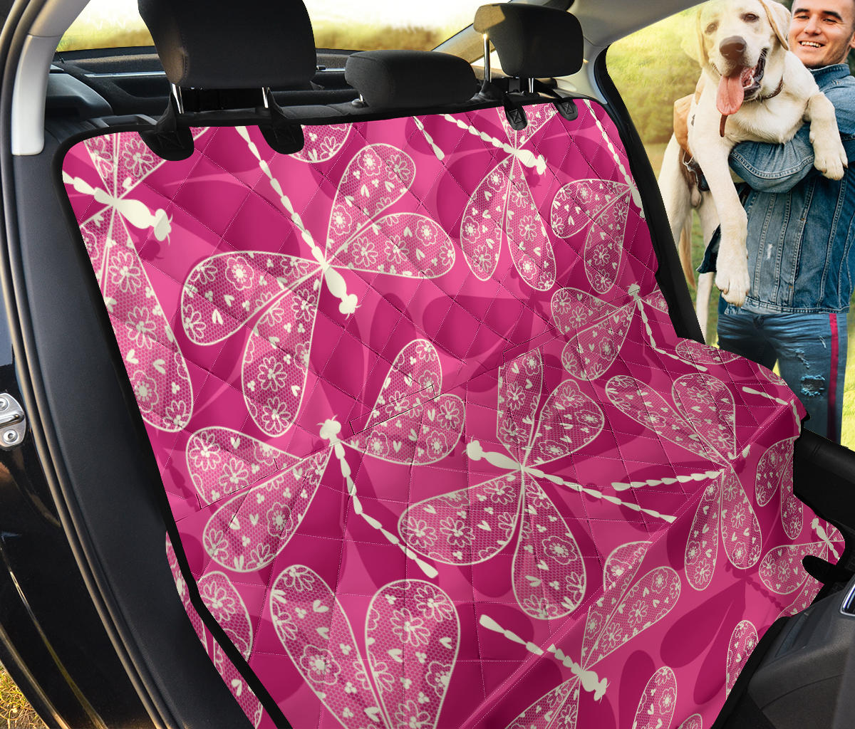 Beautiful Dragonfly Pink Background Dog Car Seat Covers