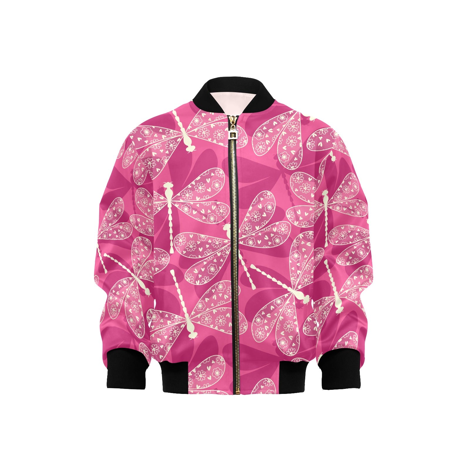 Beautiful dragonfly pink background Kids' Boys' Girls' Bomber Jacket