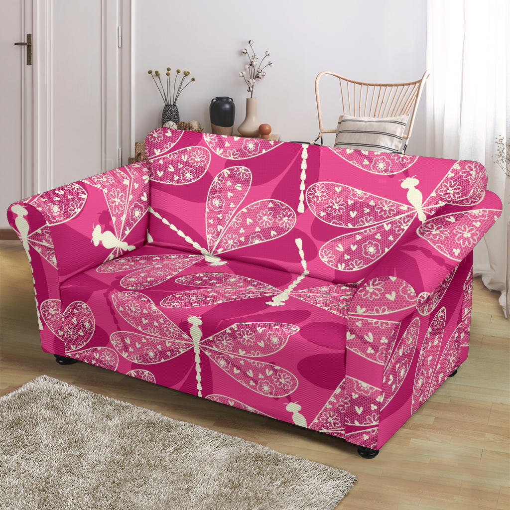 Beautiful Dragonfly Pink Background Loveseat Couch Slipcover