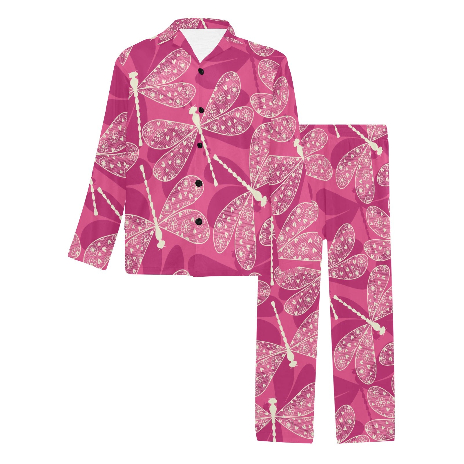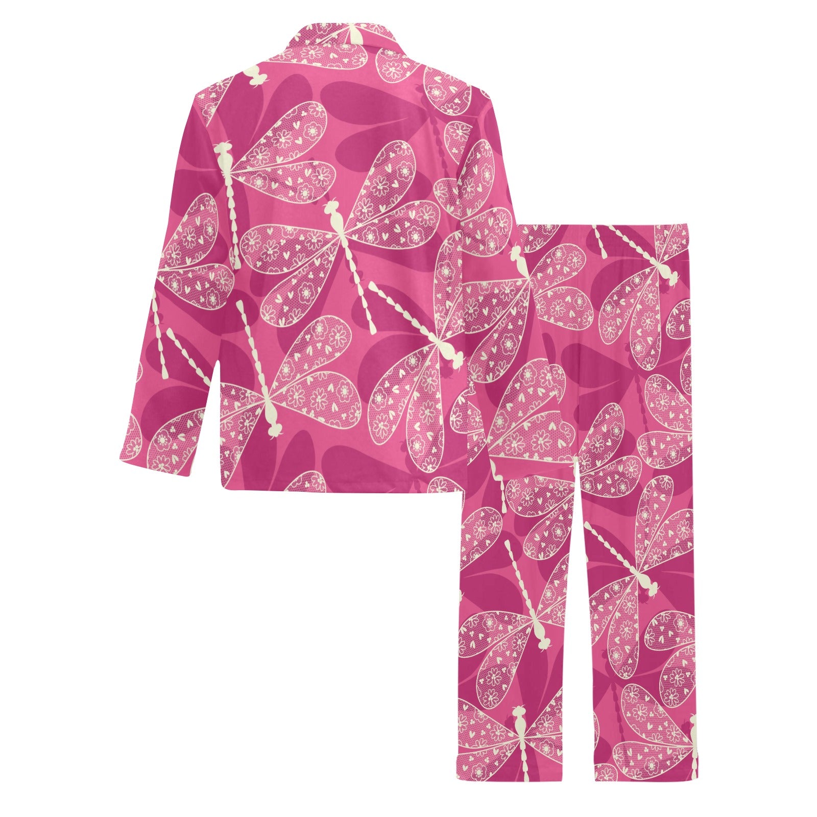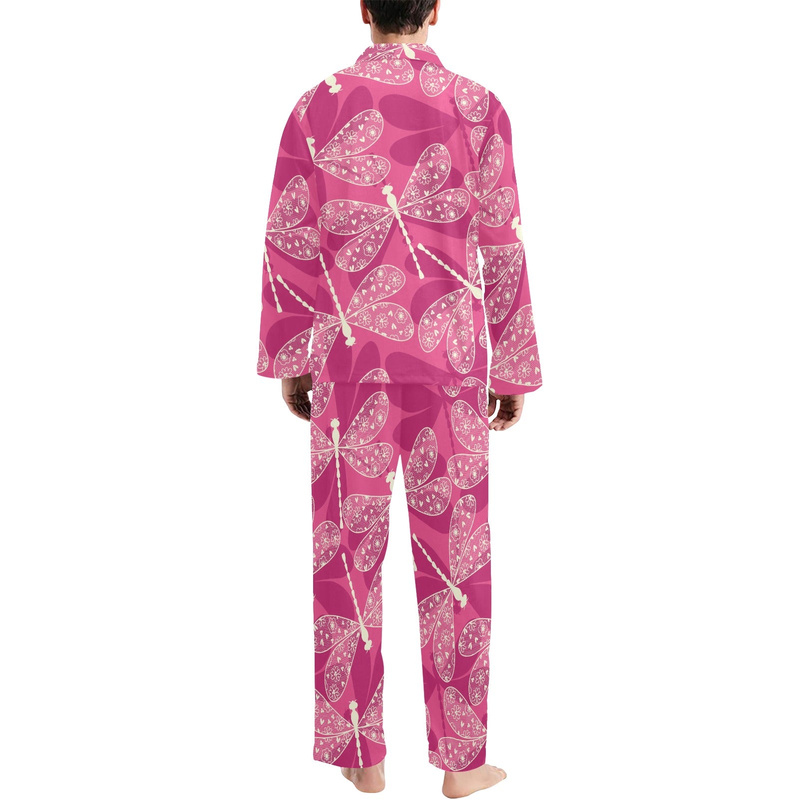 Beautiful dragonfly pink background Men's Long Pajama Set