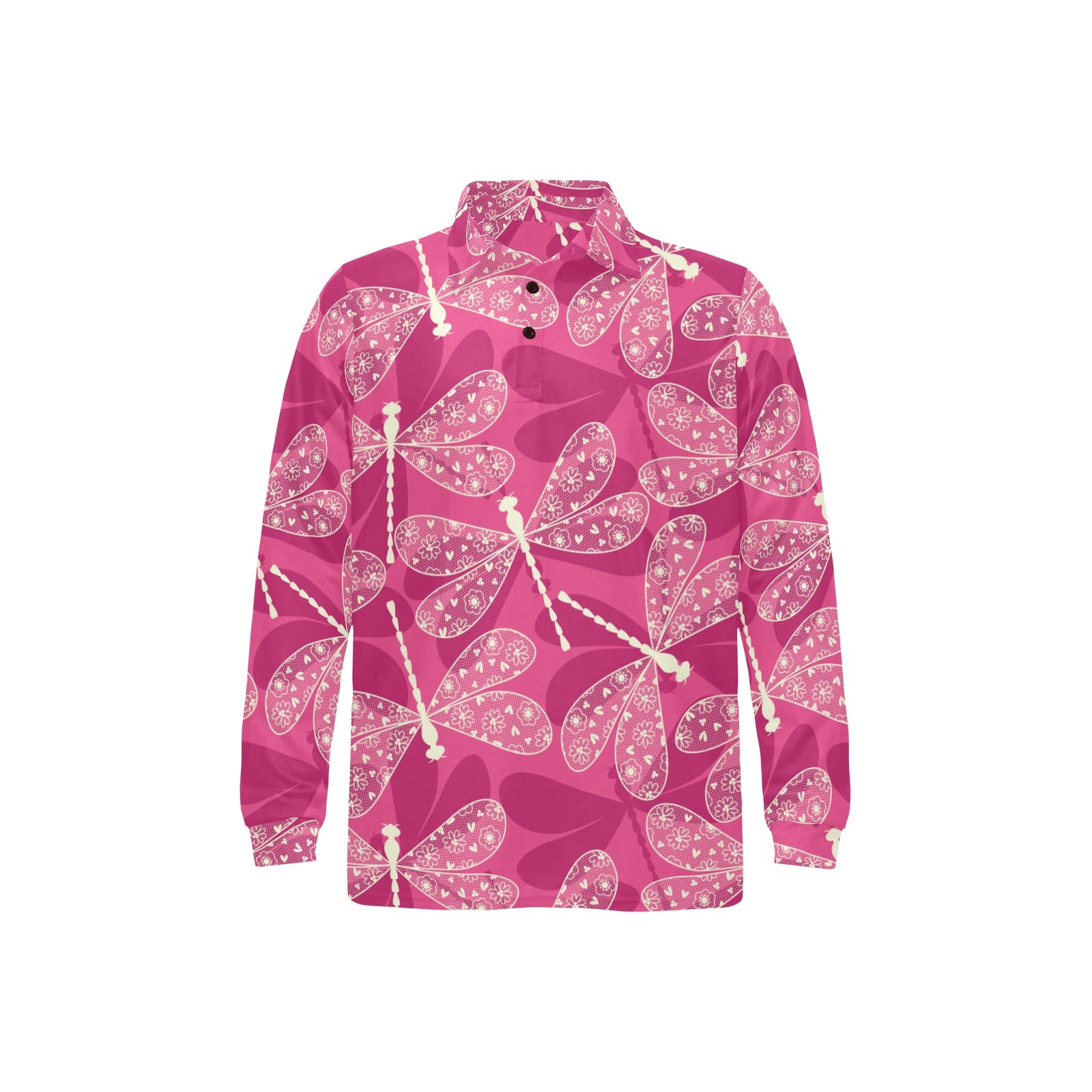 Beautiful dragonfly pink background Men's Long Sleeve Polo Shirt