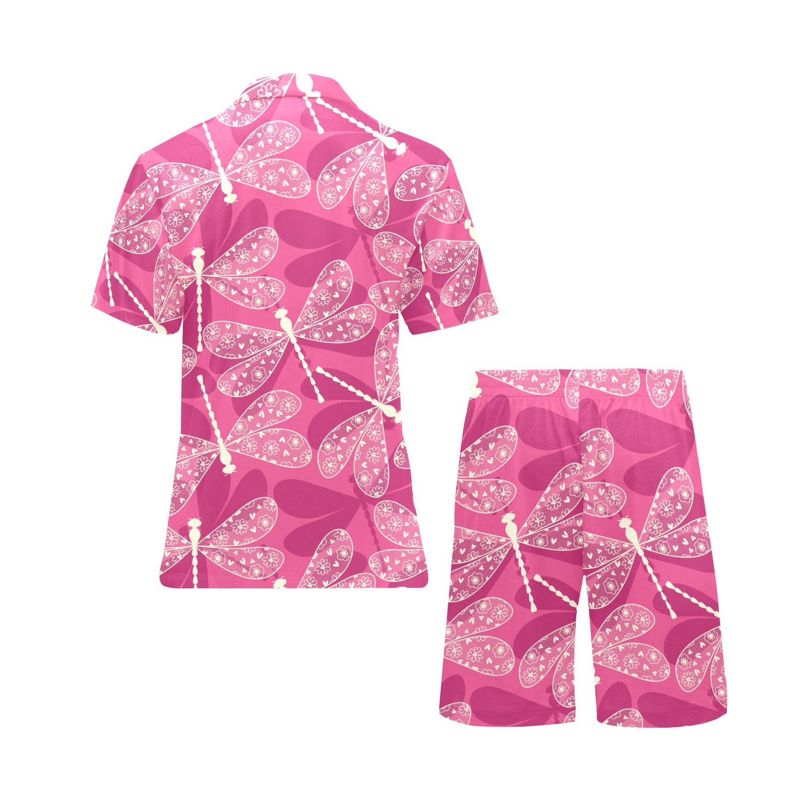 Beautiful dragonfly pink background Men's V-Neck Short Pajama Set