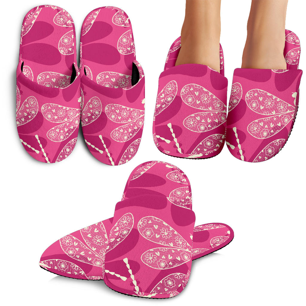 Beautiful dragonfly pink background Slippers are uniqued design and limited item. It made to order, hand printed, and sewn with love in our factory.