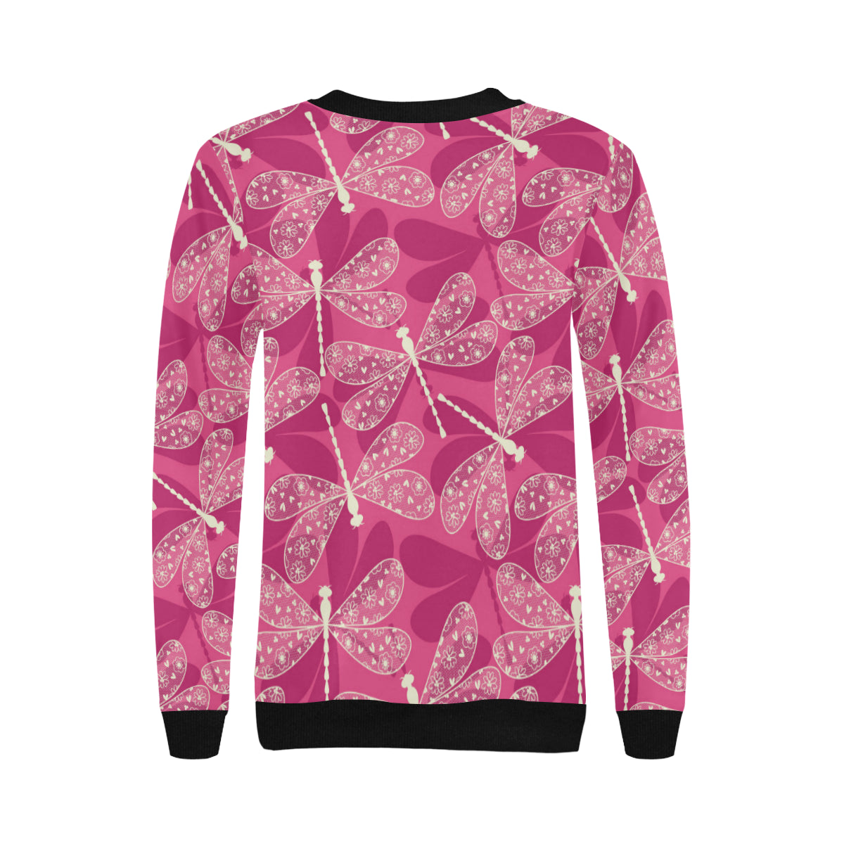 Beautiful dragonfly pink background Women's Crew Neck Sweatshirt is a uniqued design and limited item. It made to order, hand printed, and sewn with love in our factory.