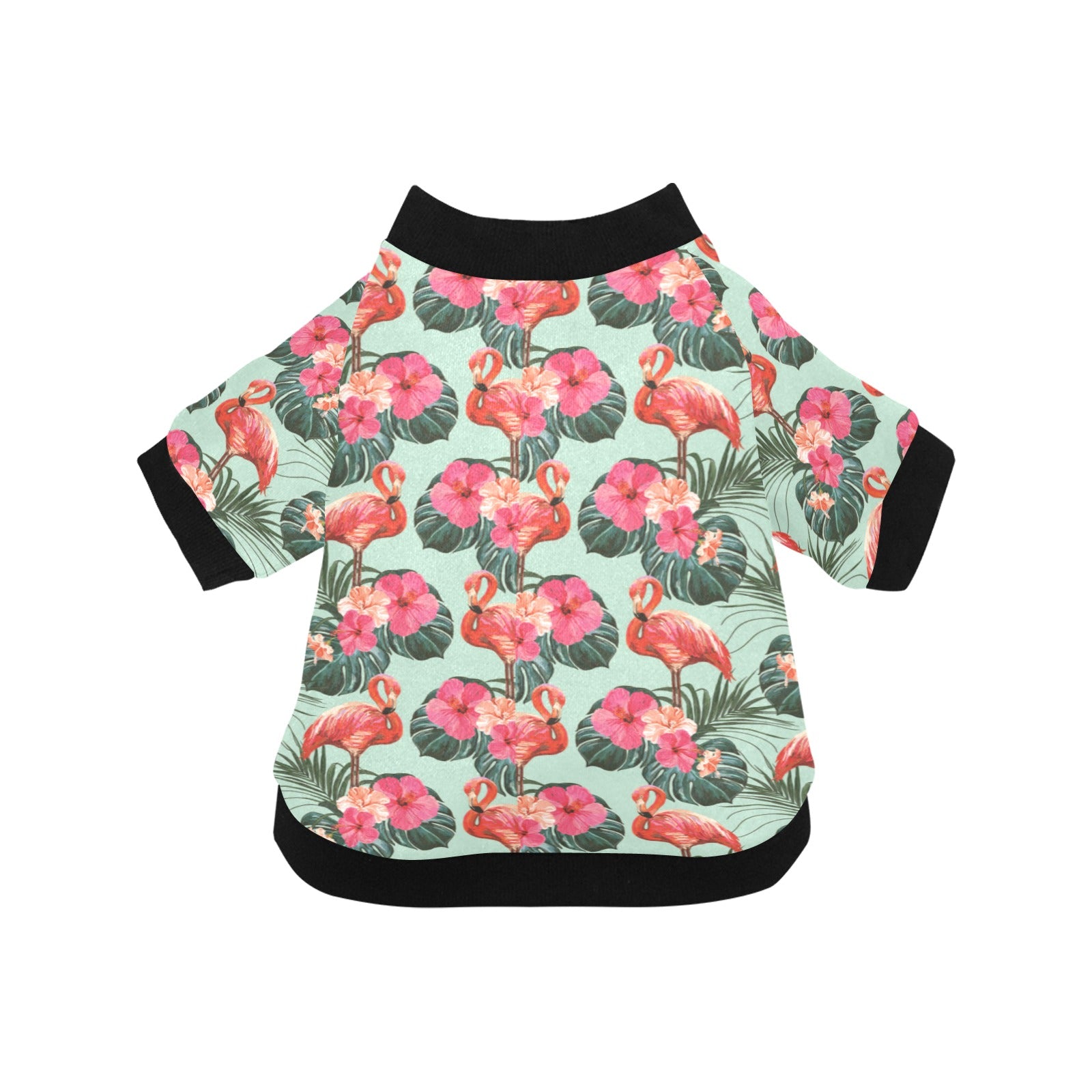 Beautiful flamingo tropical palm leaves hibiscus p All Over Print Pet Dog Round Neck Fuzzy Shirt