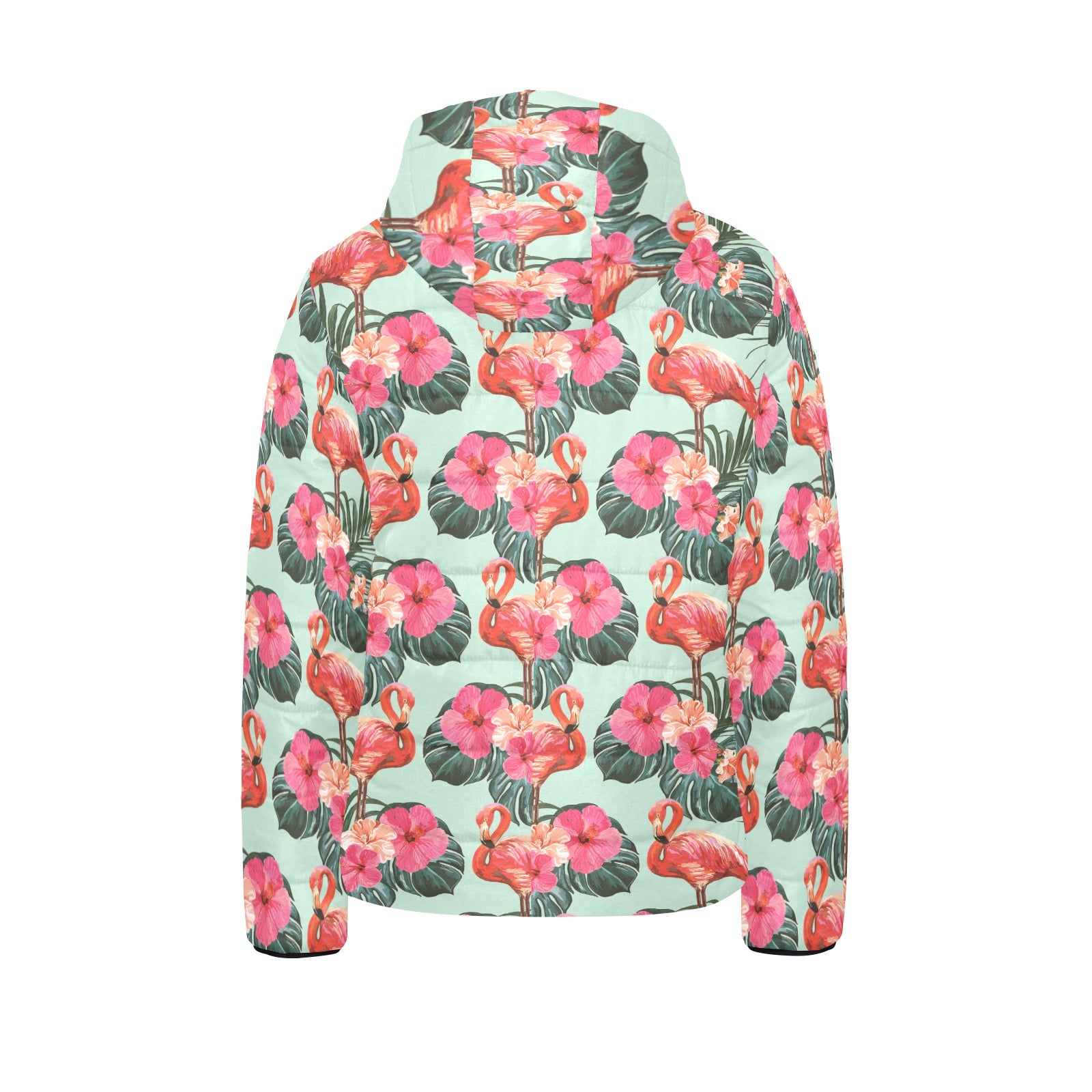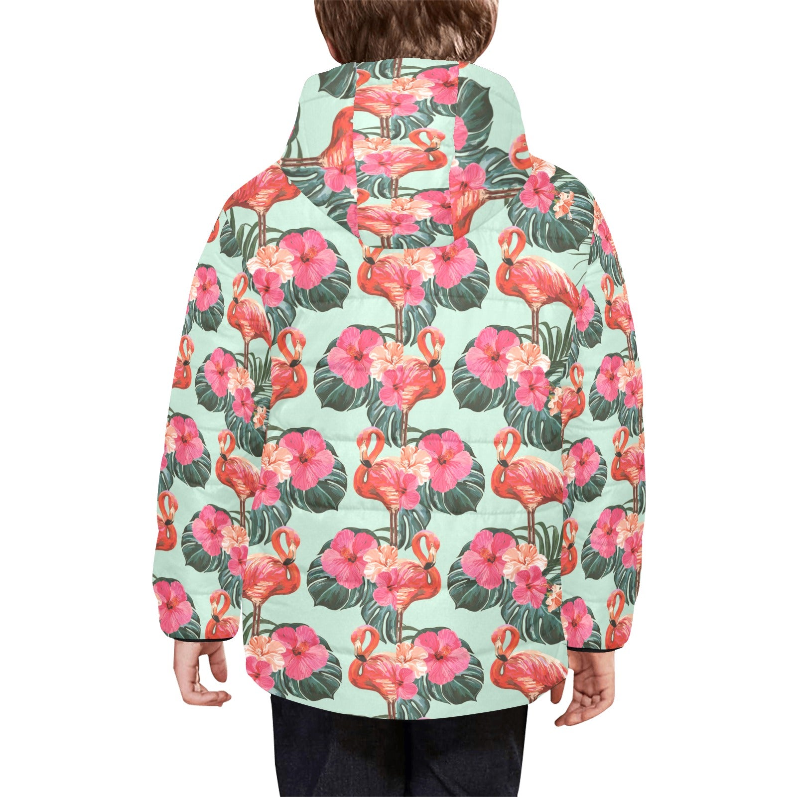 Beautiful flamingo tropical palm leaves hibiscus p Kids' Boys' Girls' Padded Hooded Jacket