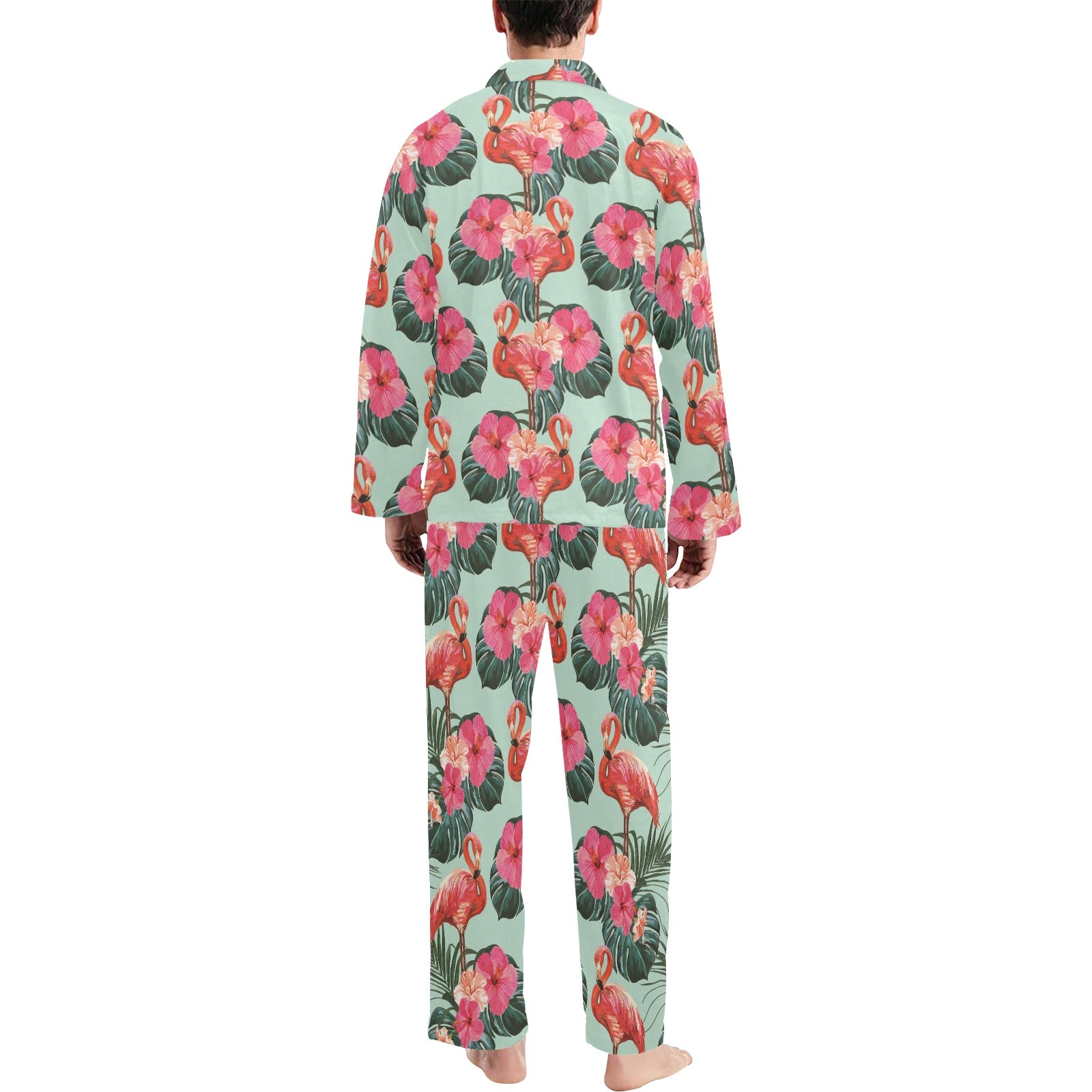 Beautiful flamingo tropical palm leaves hibiscus p Men's Long Pajama Set