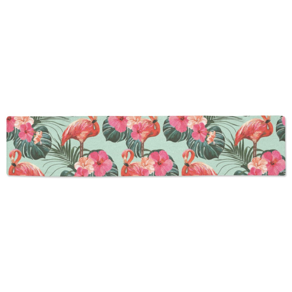 Beautiful flamingo tropical palm leaves hibiscus p Table Runner