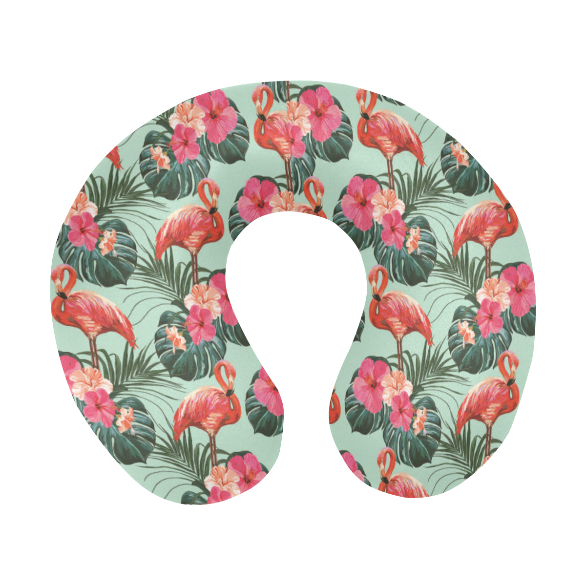 Beautiful flamingo tropical palm leaves hibiscus p U-Shaped Travel Neck Pillow