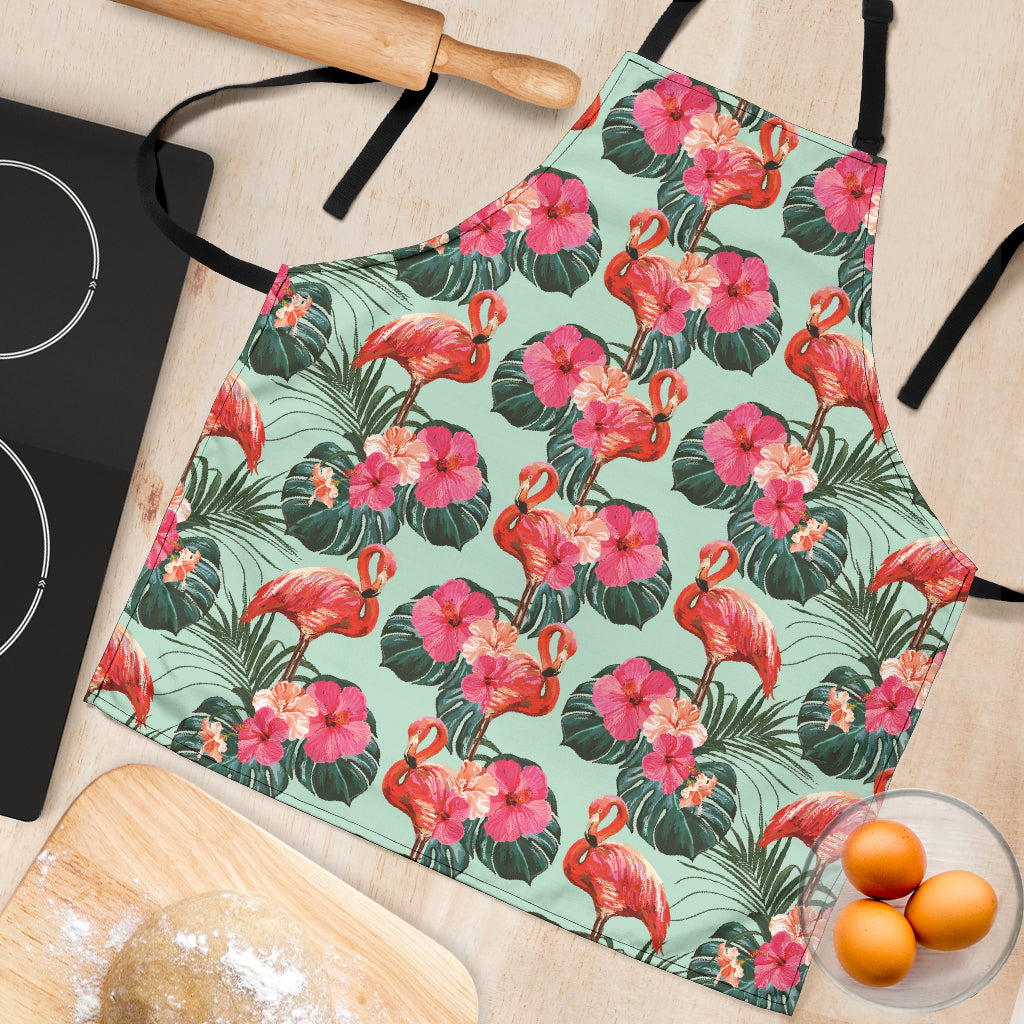 Beautiful Flamingo Tropical Palm Leaves Hibiscus Pateern Background Adjustable Apron