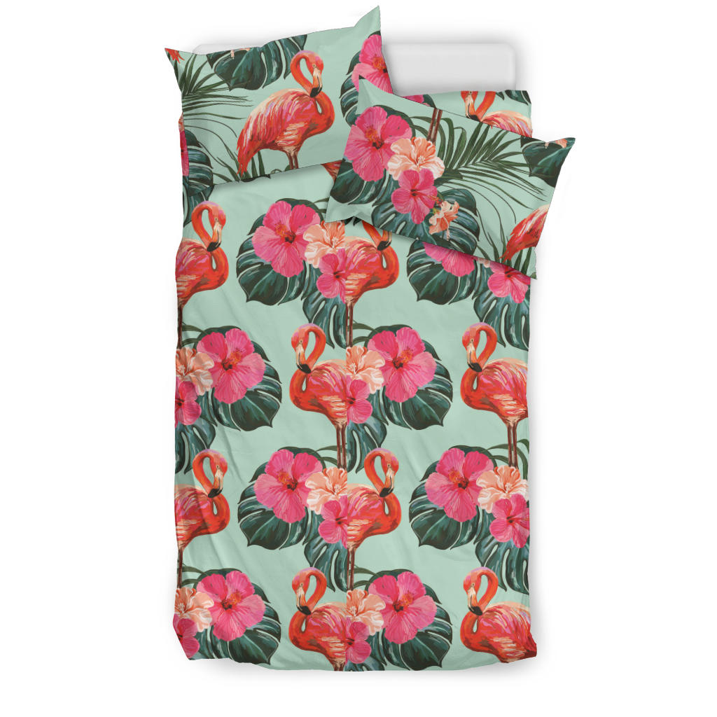 Beautiful flamingo tropical palm leaves hibiscus pateern background Bedding Set is a uniqued design and limited item. It made to order, hand printed, and sewn with love in our factory.