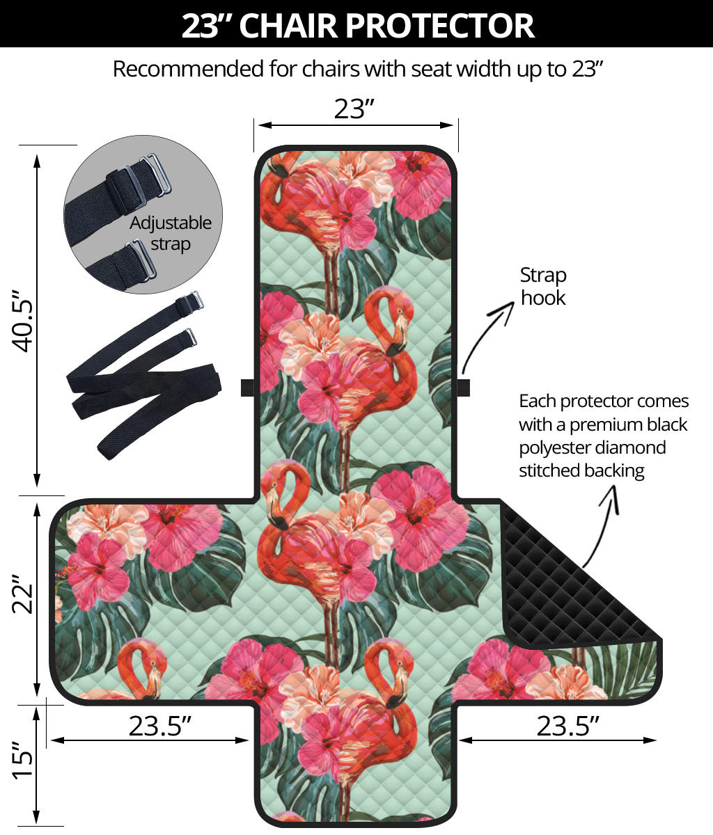 Beautiful flamingo tropical palm leaves hibiscus pateern background Chair Cover Protector