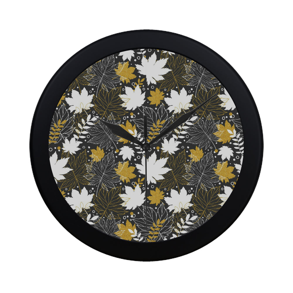 Beautiful gold autumn maple leaf pattern Elegant Black Wall Clock